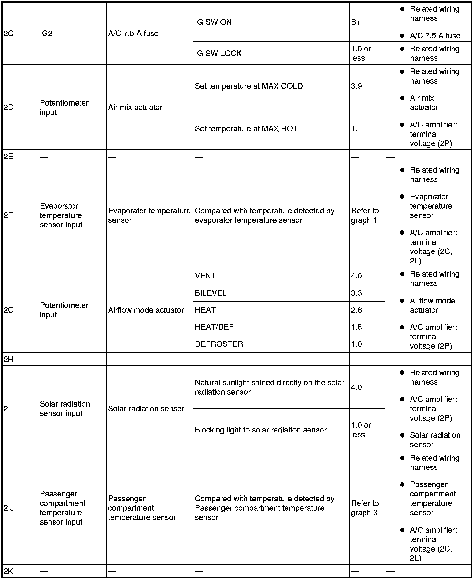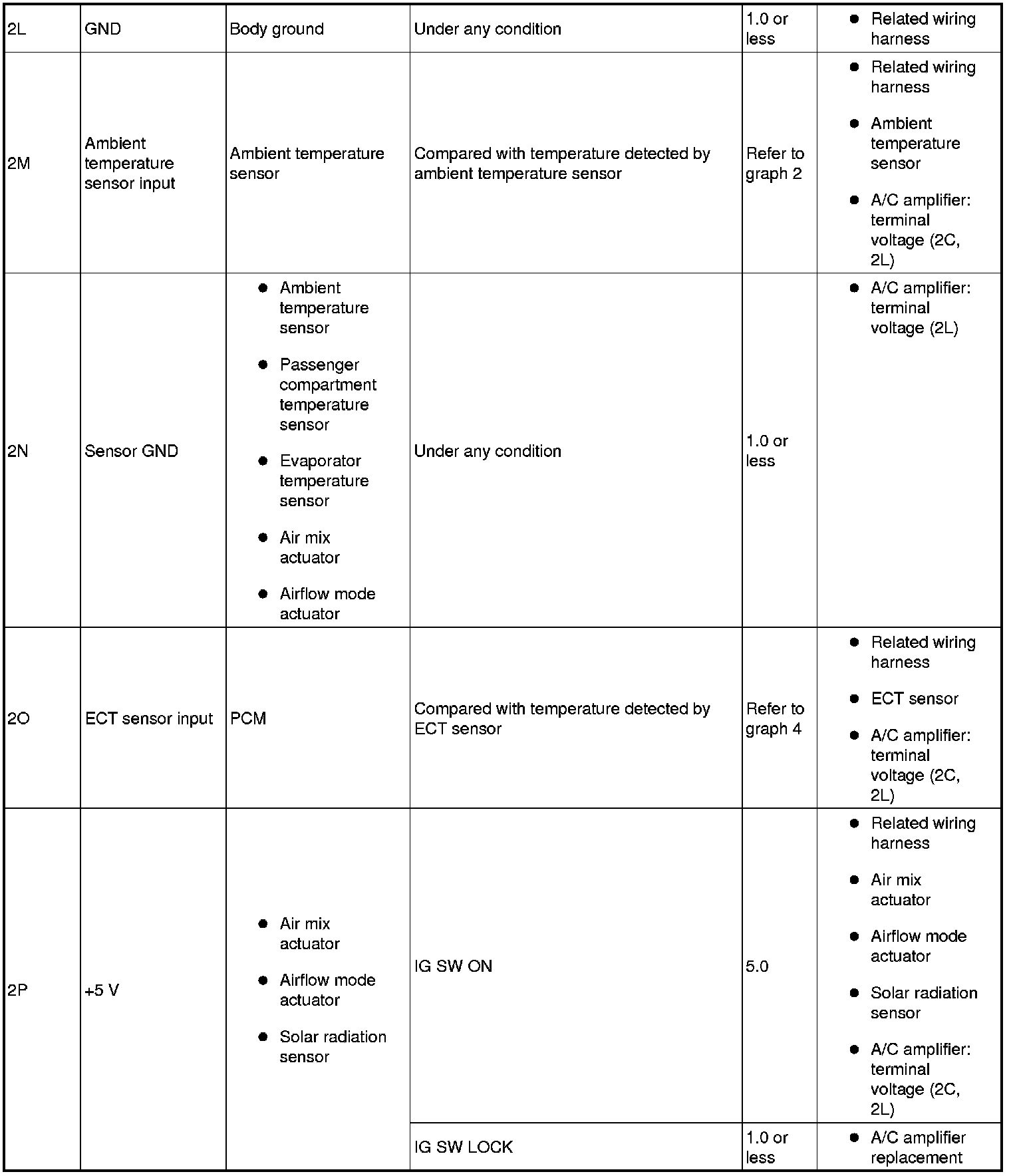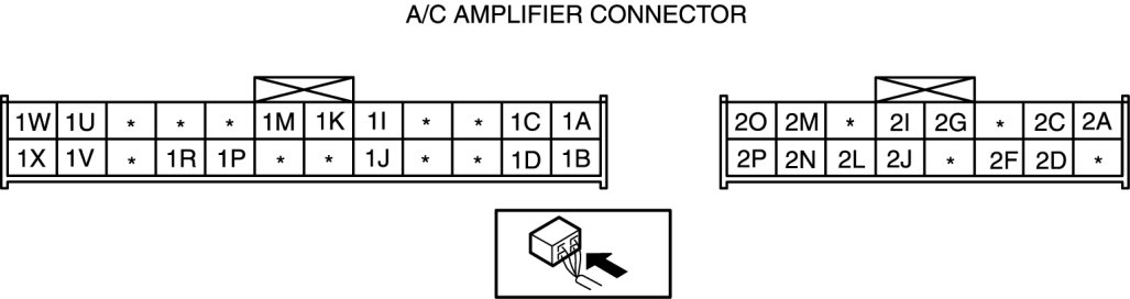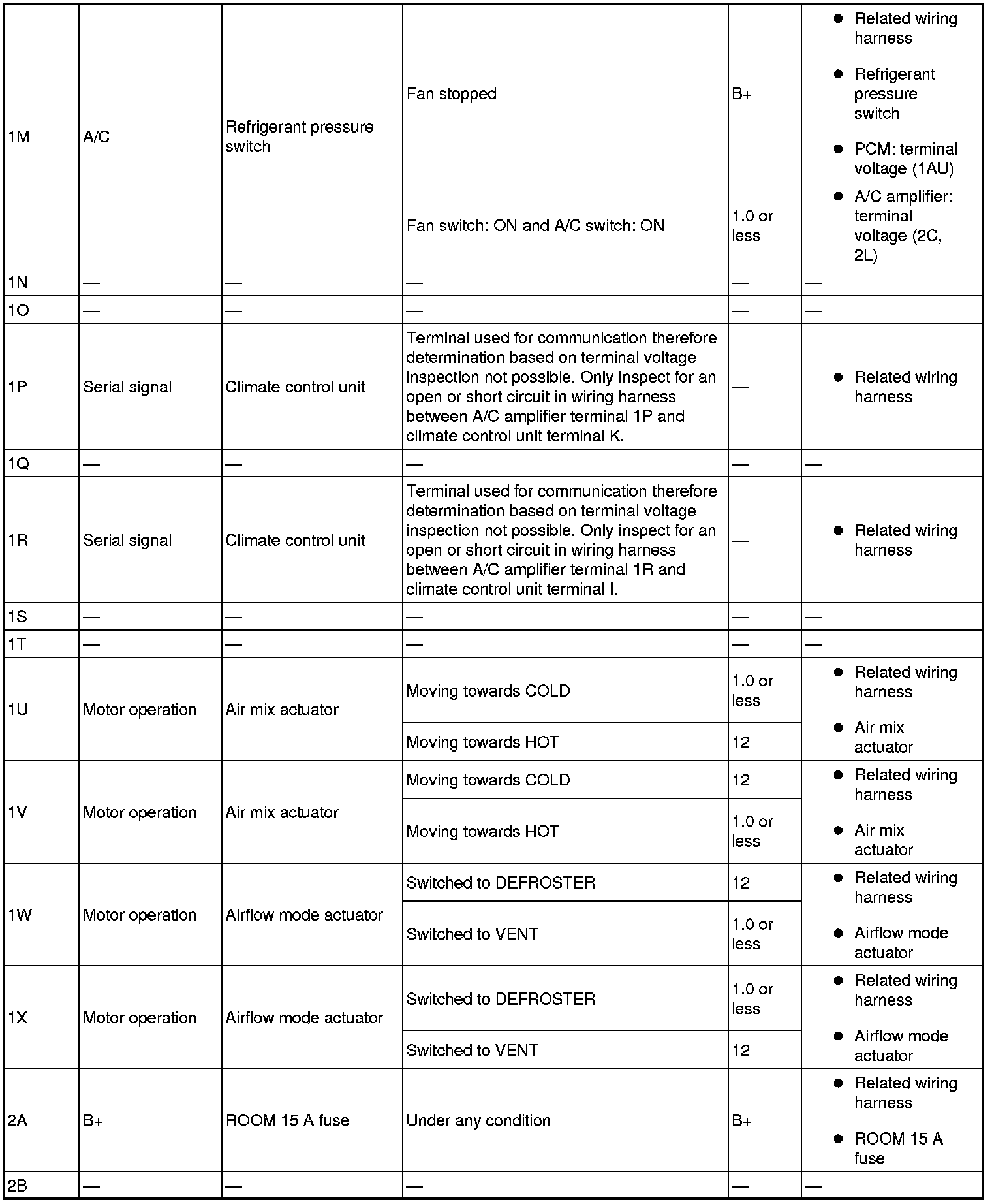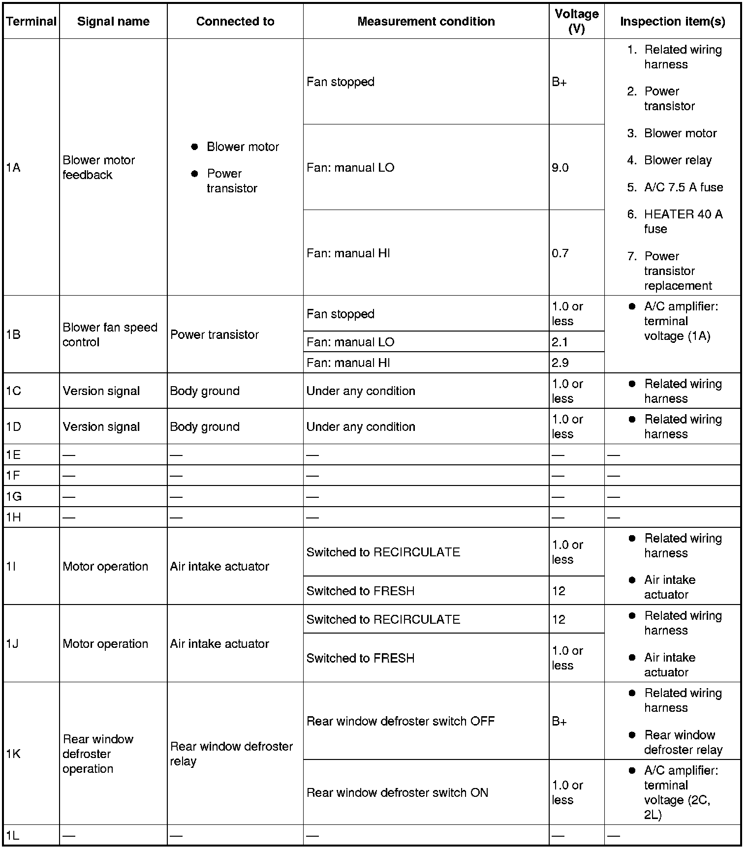 - If the parts under "Inspection item(s)" are found to be normal (except for terminal 1A), replace the A/C amplifier.