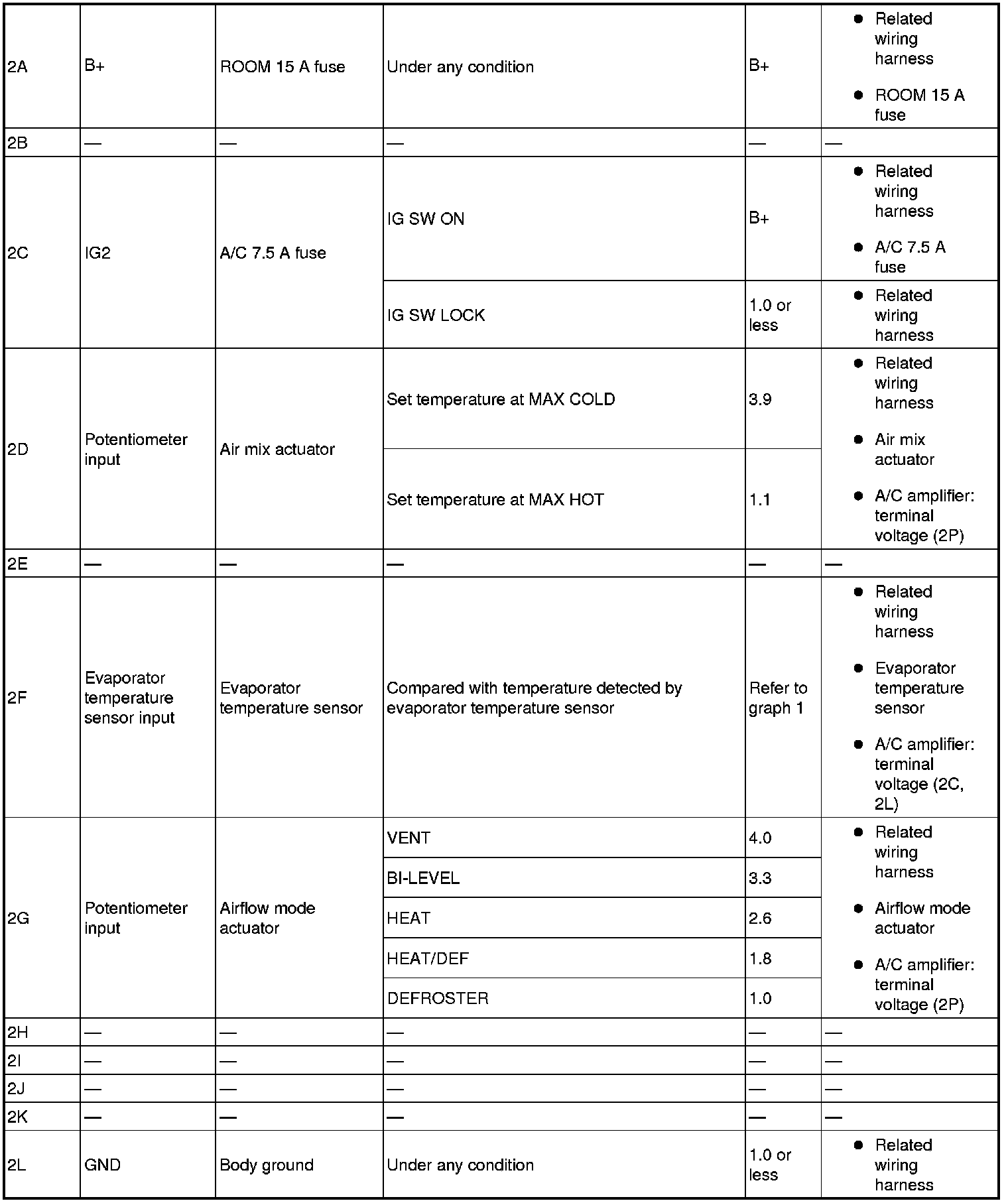 - If the parts under "Inspection item(s)" are found to be normal, replace the A/C amplifier.
