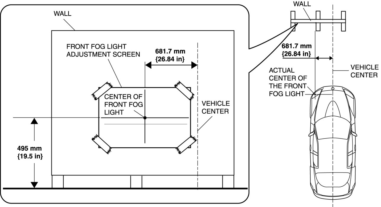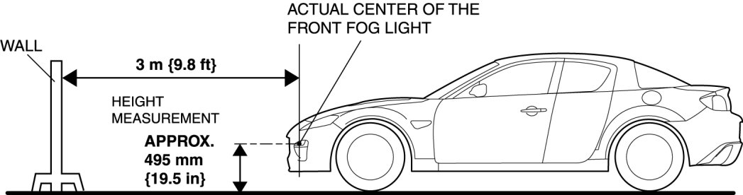 1. Point the front fog lights to a wall and verify that the front fog lights are as shown in the figure.