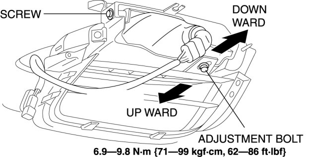 - Move the front fog light in the direction of the arrow shown in the figure to adjust the brightness border line to the position indicated on the adjustment screen.