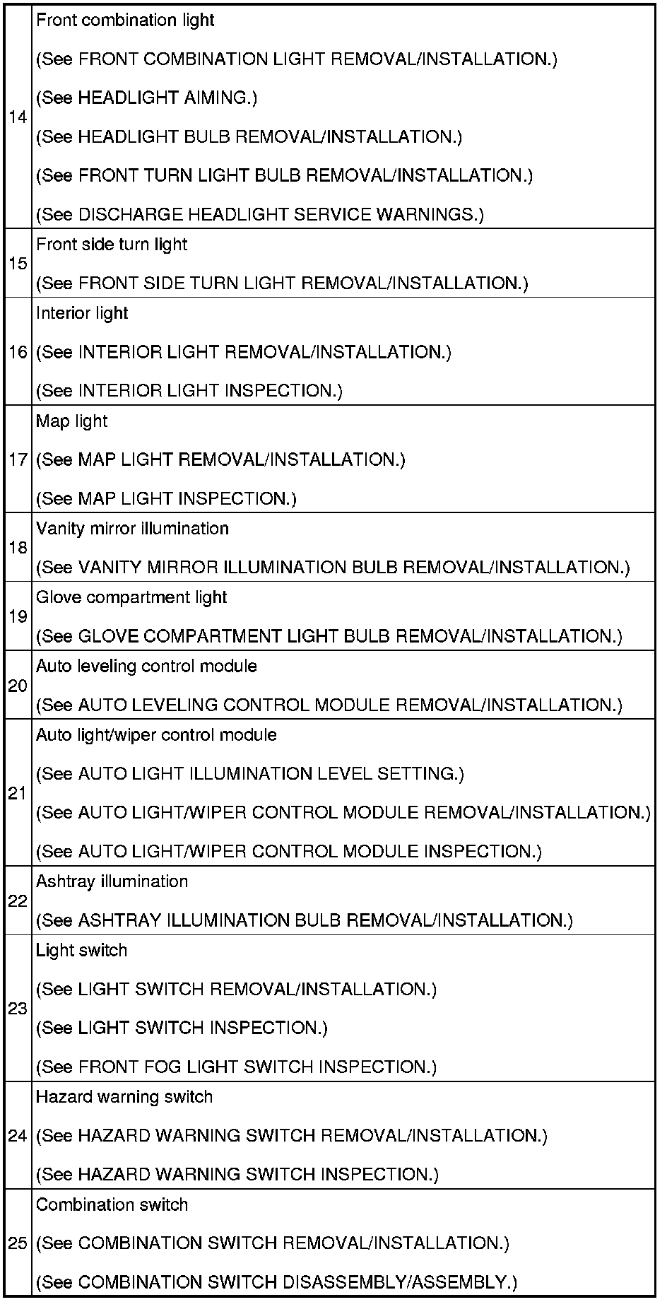 LIGHTING SYSTEMS LOCATION INDEX