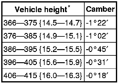 - Difference between the left and right camber angle is within .