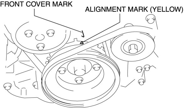 4. Verify that the eccentric shaft position plate alignment mark (yellow) and the front cover mark is aligned.