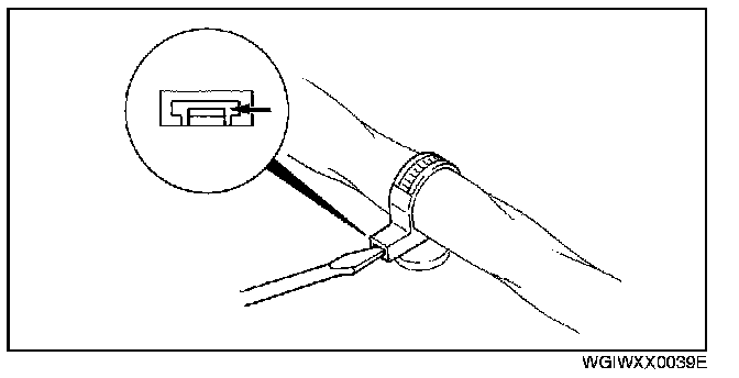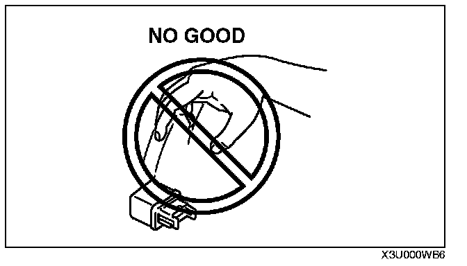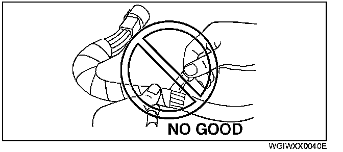 - When a tester is used to inspect for continuity or measuring voltage, insert the tester probe from the wiring harness side.