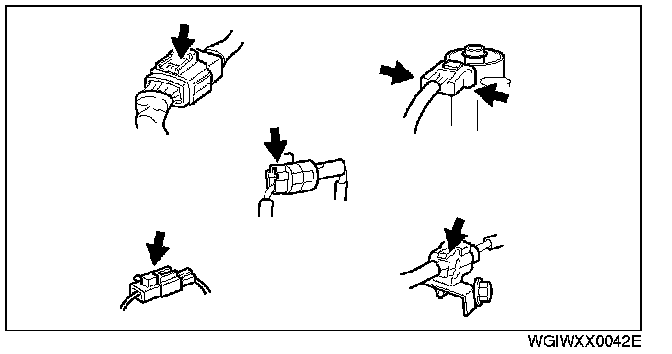 - Before disconnecting connectors or removing electrical parts, disconnect the negative battery cable.