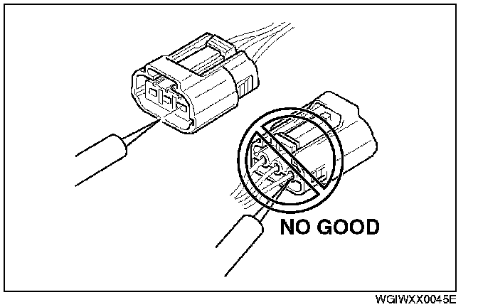 - Inspect the terminals of waterproof connectors from the connector side since they cannot be accessed from the wiring harness side.