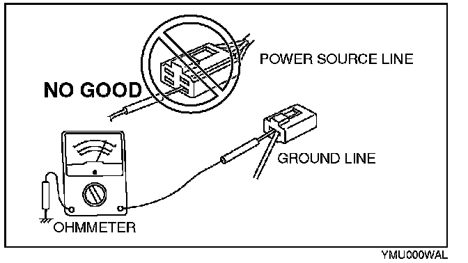 CAUTION: Do not connect the ohmmeter to any circuit where voltage is applied. This will damage the ohmmeter.