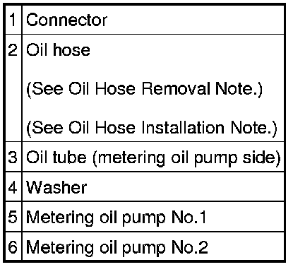 - Cover the areas around the oil hoses and metering oil pumps before disconnecting the oil hoses so that the oil remaining in the oil hoses and the metering oil pumps does not get on surrounding parts.