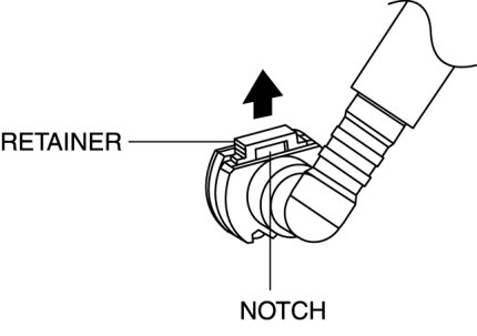 1. Insert a flathead screwdriver into the notch of the oil hose retainer, and pull up the retainer in the direction of the arrow shown in the figure to unlock.