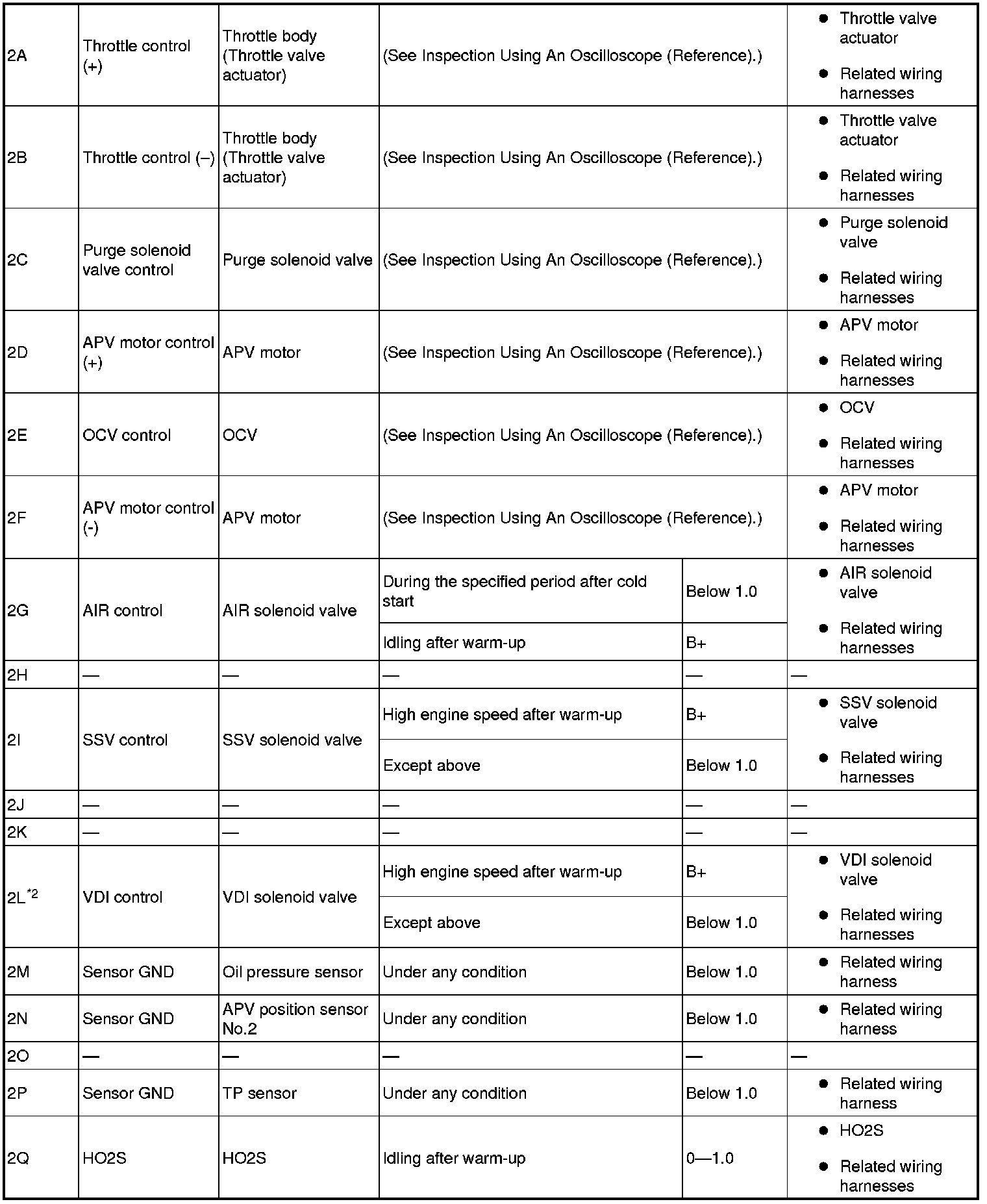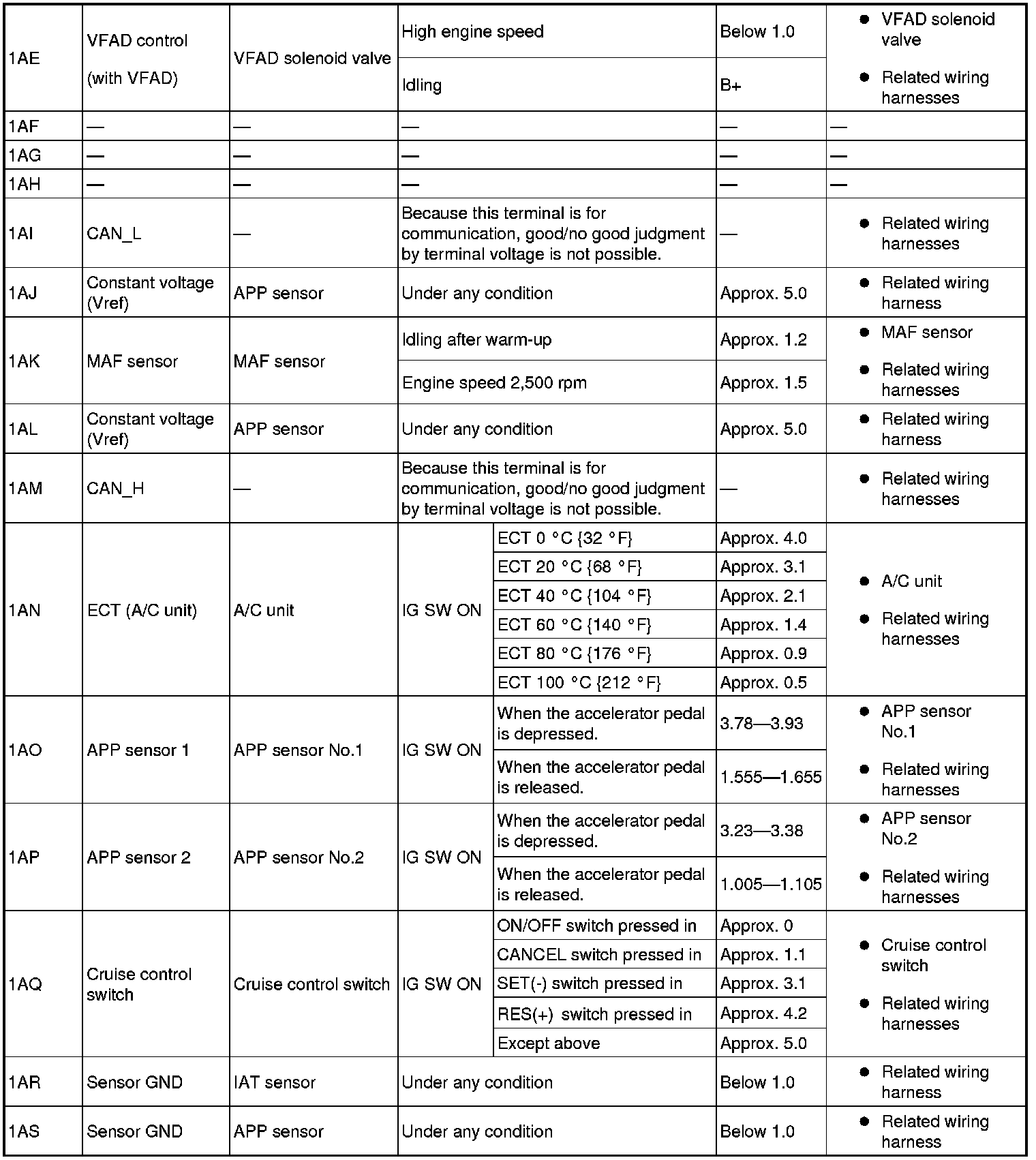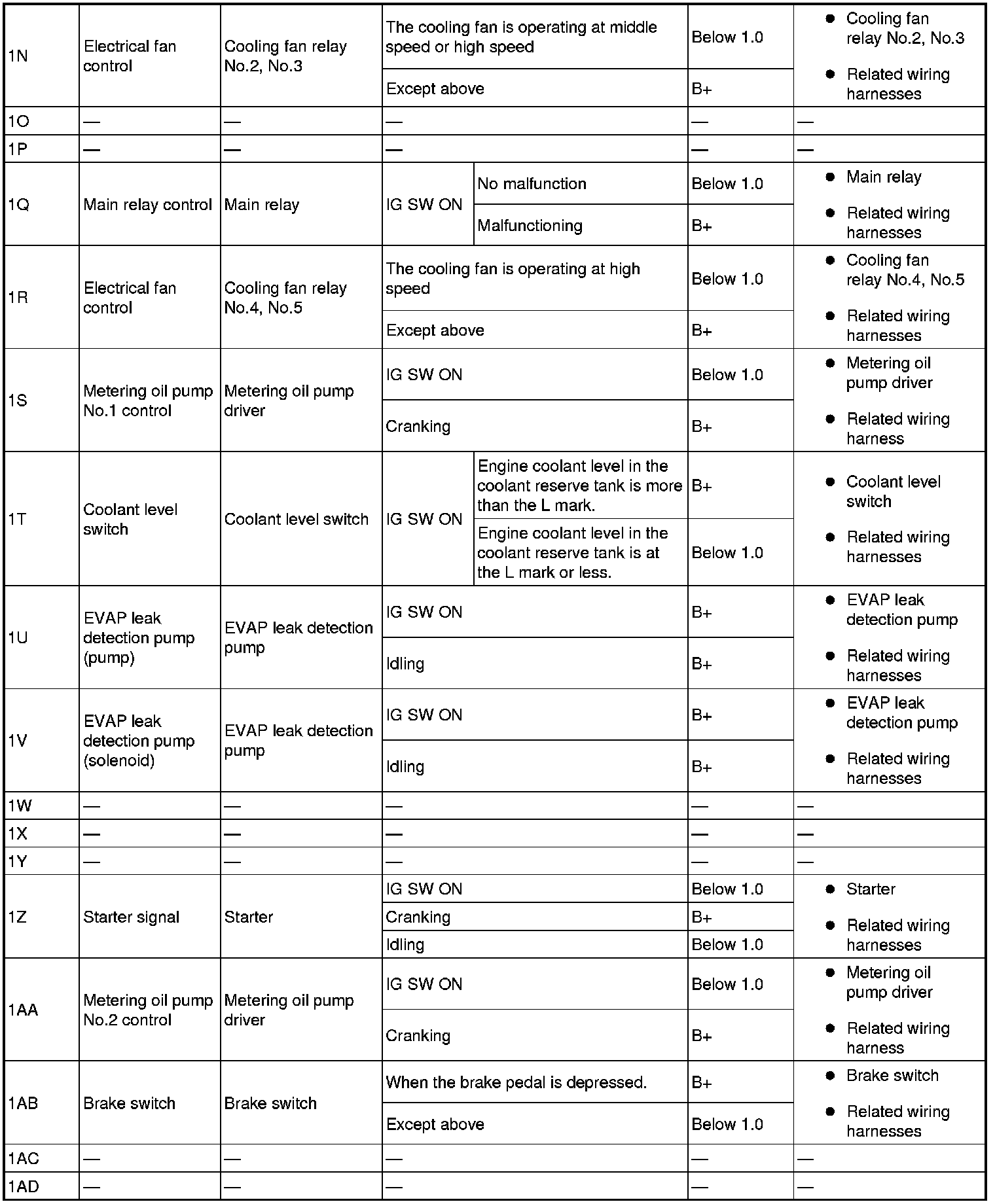 - The PCM terminal voltages vary with change in measuring conditions and vehicle conditions. Always carry out a total inspection of the input systems, output systems, and PCM to determine the cause of trouble. Otherwise, a wrong diagnosis will be made.