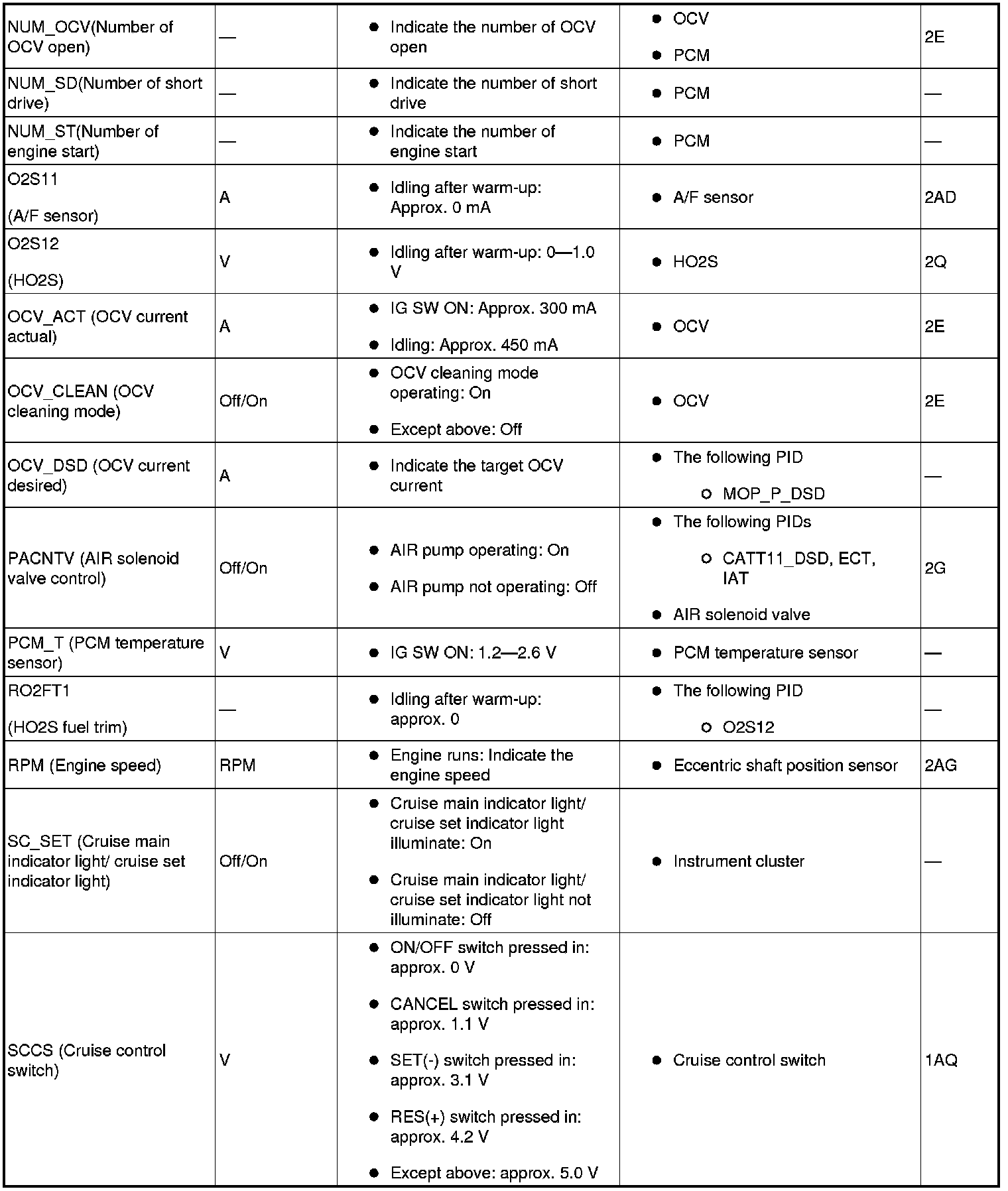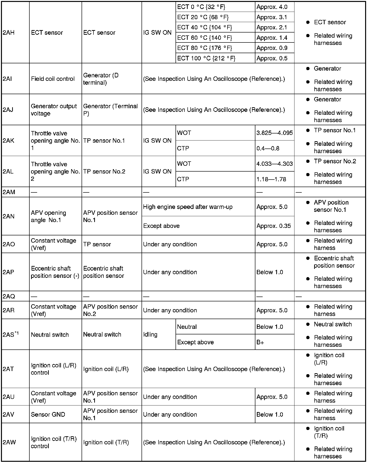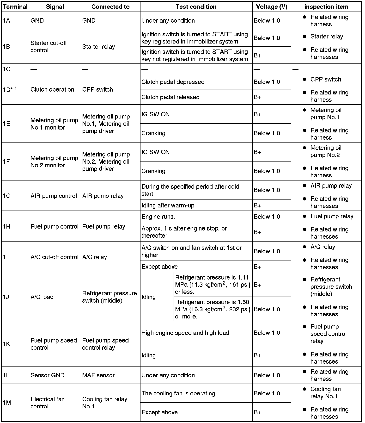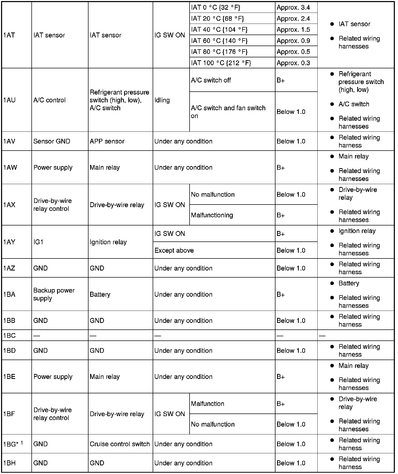 - The PCM terminal voltages vary with change in measuring conditions and vehicle conditions. Always carry out a total inspection of the input systems, output systems, and PCM to determine the cause of trouble. Otherwise, a wrong diagnosis will be made.