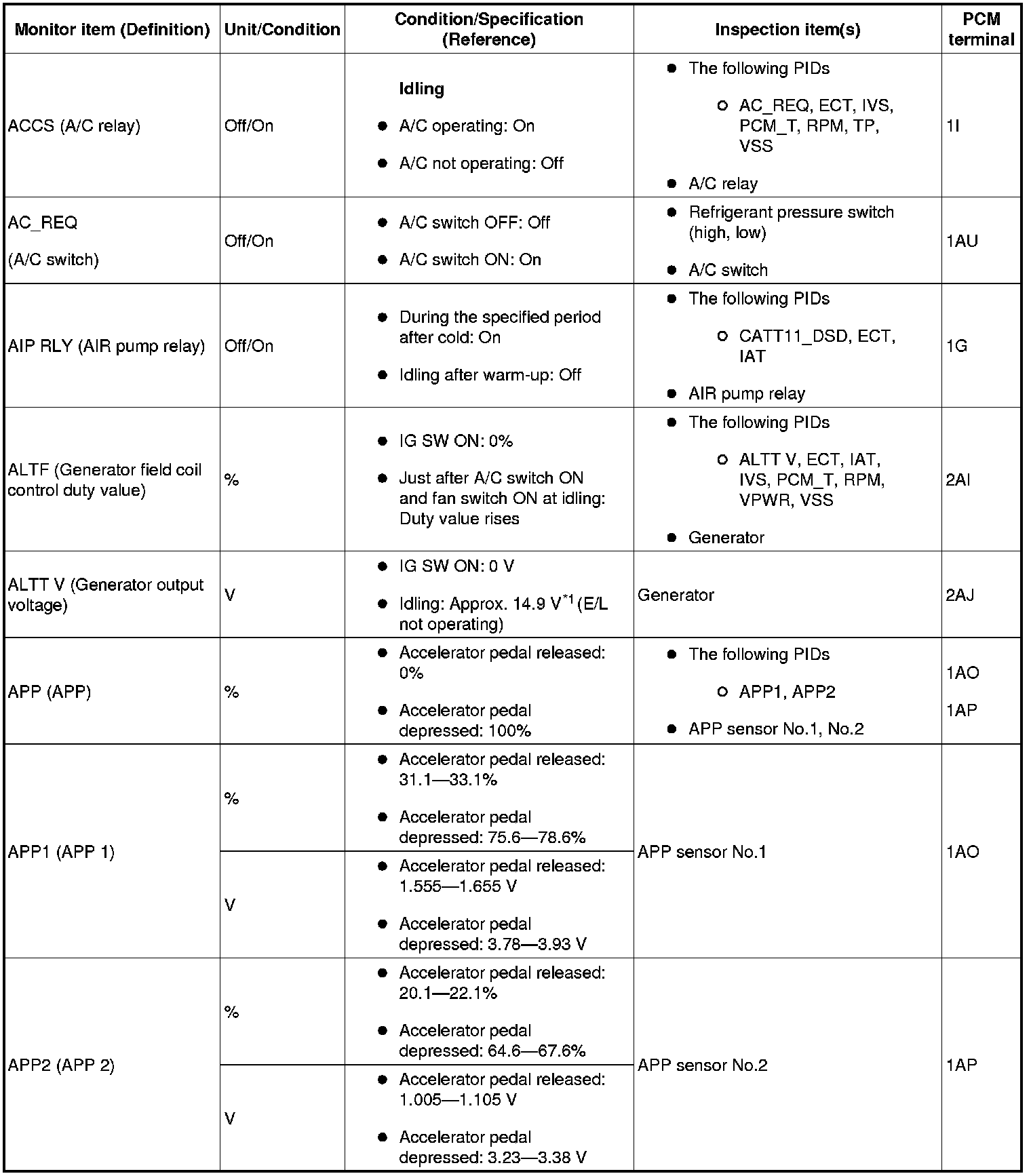- The PID/DATA MONITOR function monitors the calculated value of the input/output signals in the PCM. Therefore, an output device malfunction is not directly indicated as a malfunction of the monitored value for the output device. If a monitored value of an output device is out of specification, inspect the monitored value of the input device related to the output control.