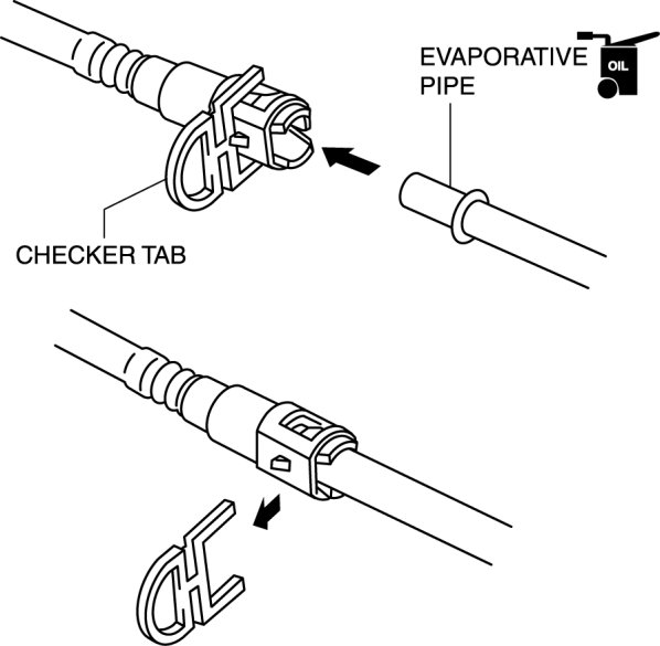 - A checker tab is integrated with the quick release connector for new evaporative hoses. Remove the checker tab from the quick release connector after the connector is completely engaged with the evaporative pipe.