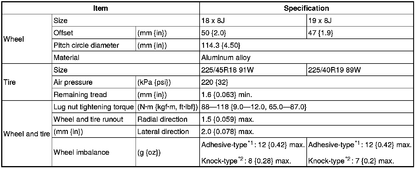 WHEEL AND TIRE SPECIFICATION