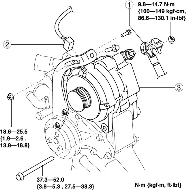 - When the battery cables are connected, touching the vehicle body with generator terminal B will generate sparks. This can cause personal injury, fire, and damage to the electrical components. Always disconnect the negative battery cable before performing the following operation.
