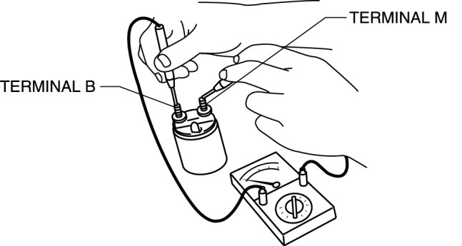 3. Verify that there is no continuity between terminals M and B using a tester.