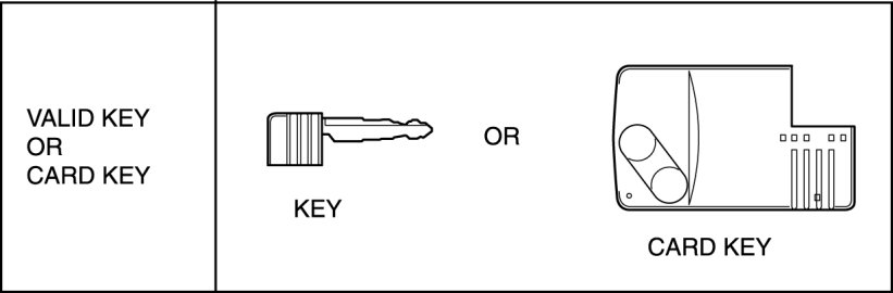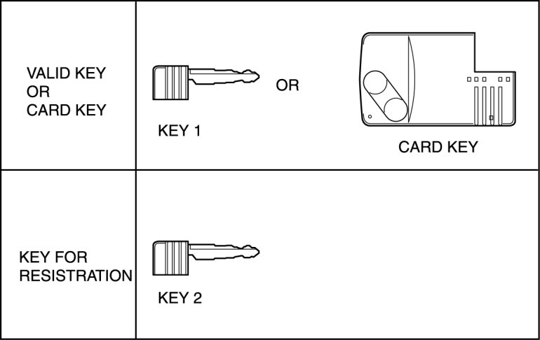 - The "Valid key" or "Valid card key" referred to in this information indicates the key that can start the engine.