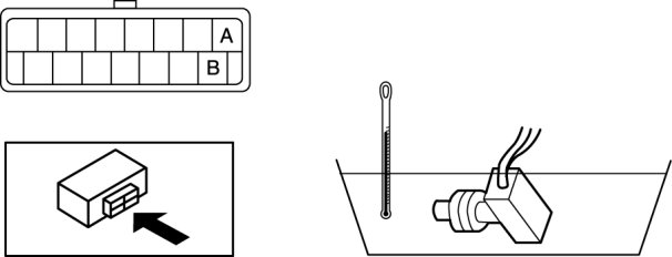 2. Place the TFT sensor and a thermometer in ATF as shown in the figure, and heat the ATF gradually.
