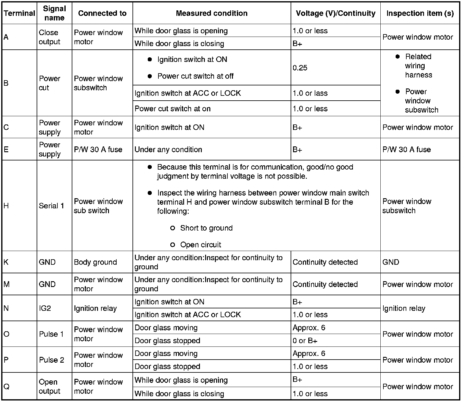 1. Measure the voltage at each terminal (except terminals K and M).