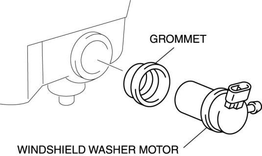 3. Remove the windshield washer motor, then remove the grommet.