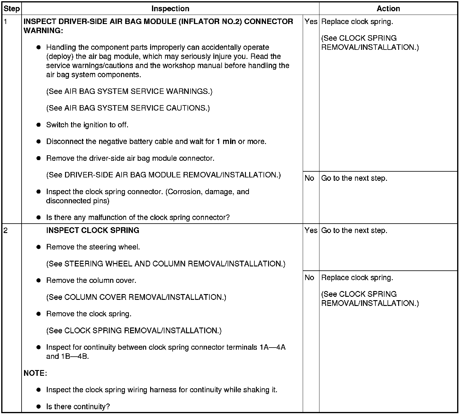 - Driver-side air bag module (inflator No.2) connector malfunction