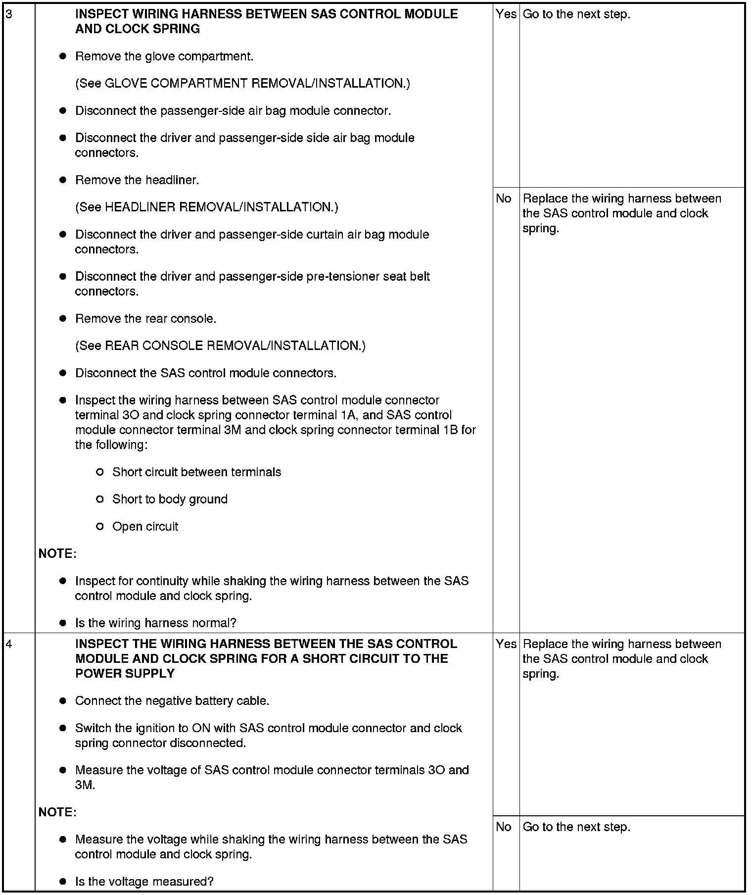 - Open or short circuit or short to ground or short to power supply in the wiring harness between the clock spring and SAS control module