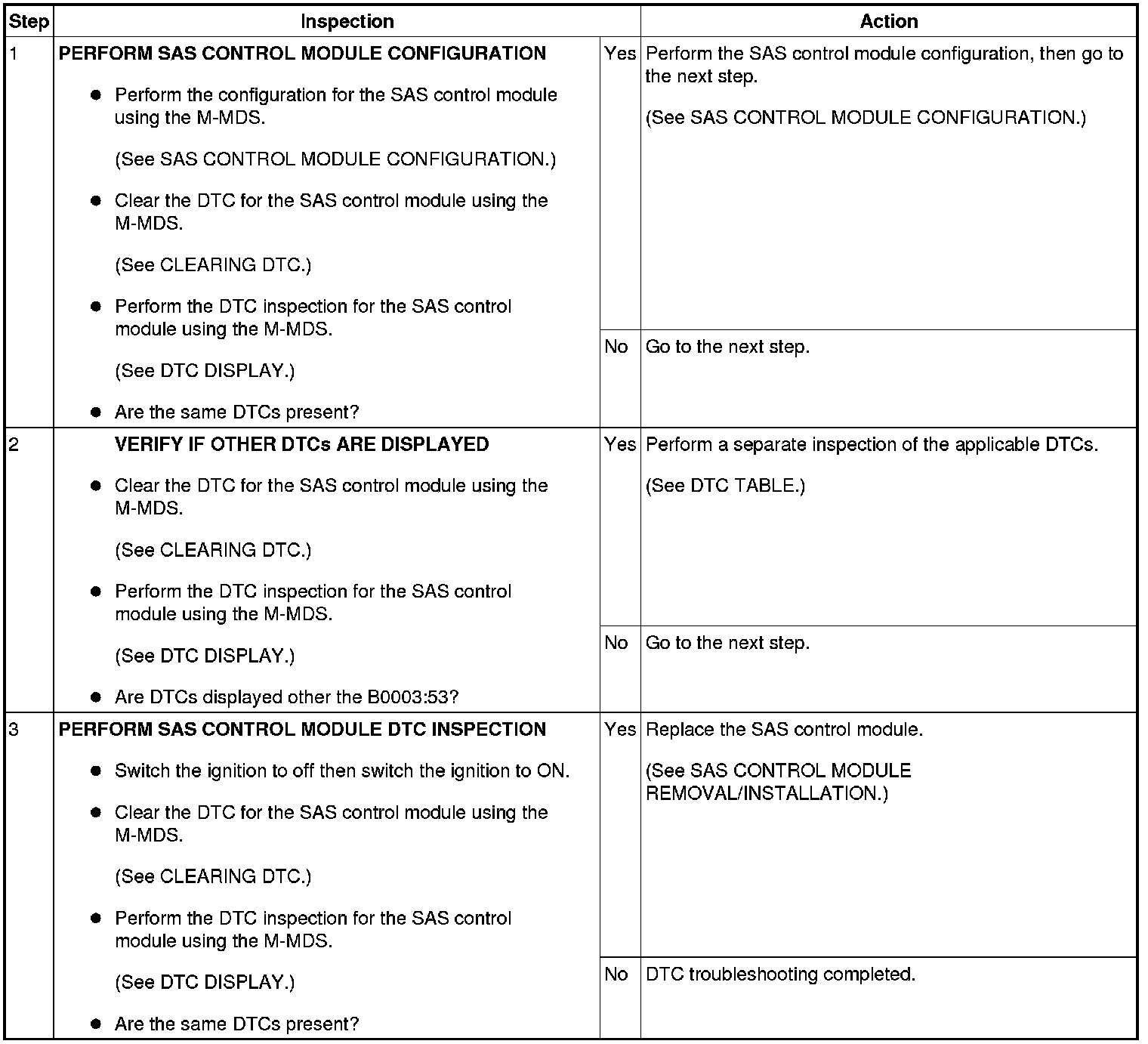 - The SAS control module configuration has not been set and other DTCs present