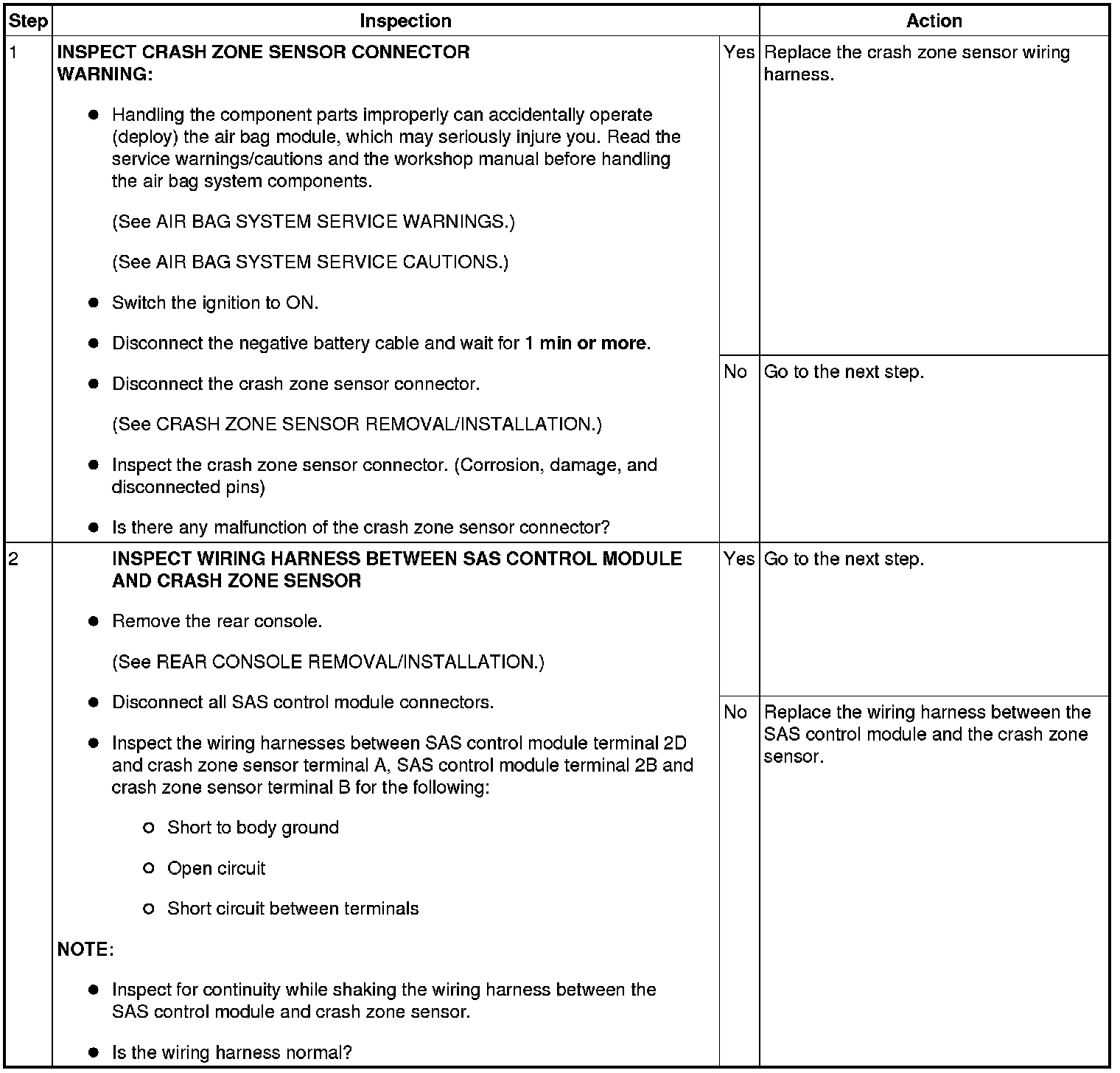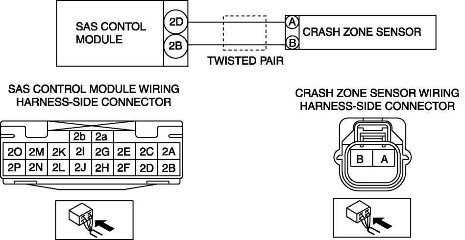 - Malfunction in the wiring harness between the crash zone sensor and SAS control module