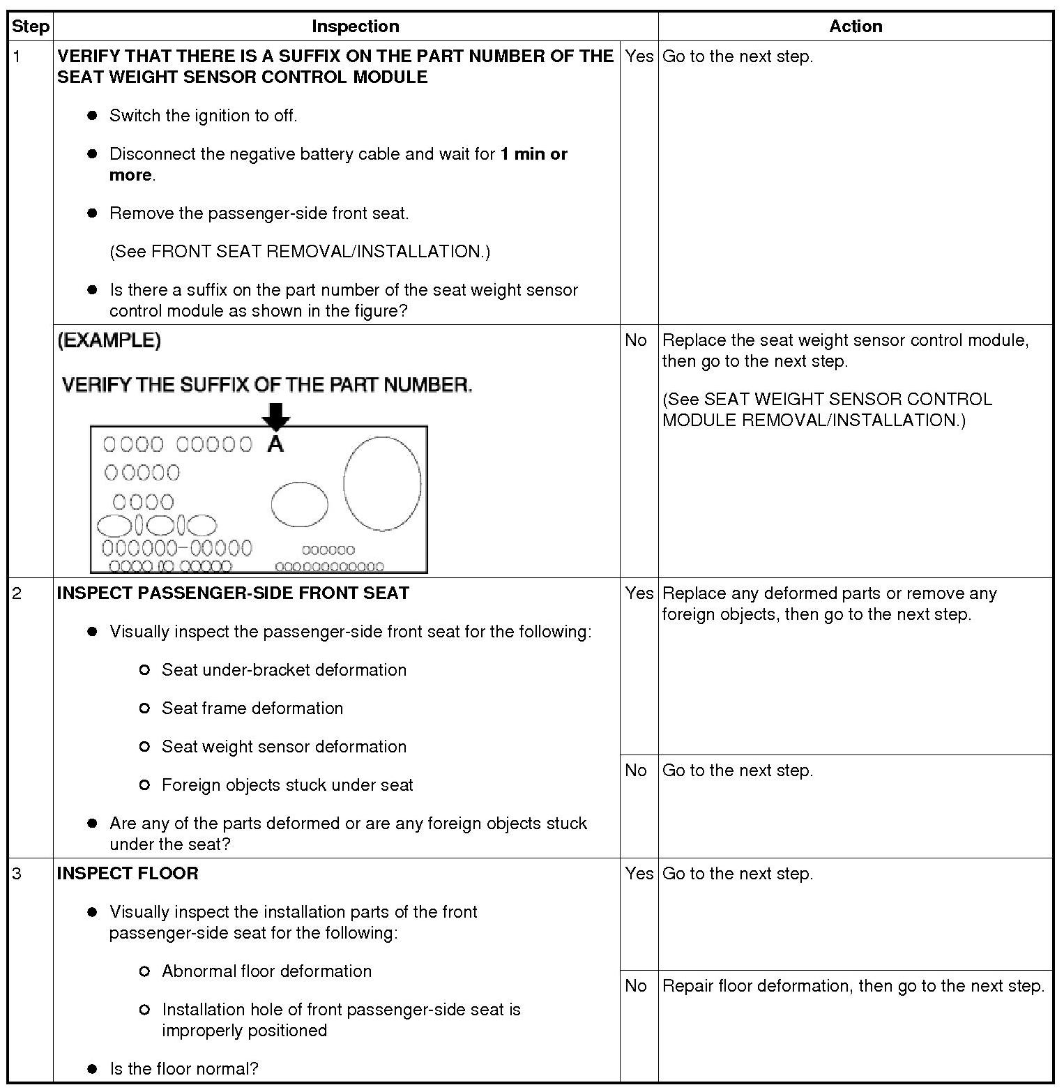 - Front passenger-side seat under-bracket or frame deformed