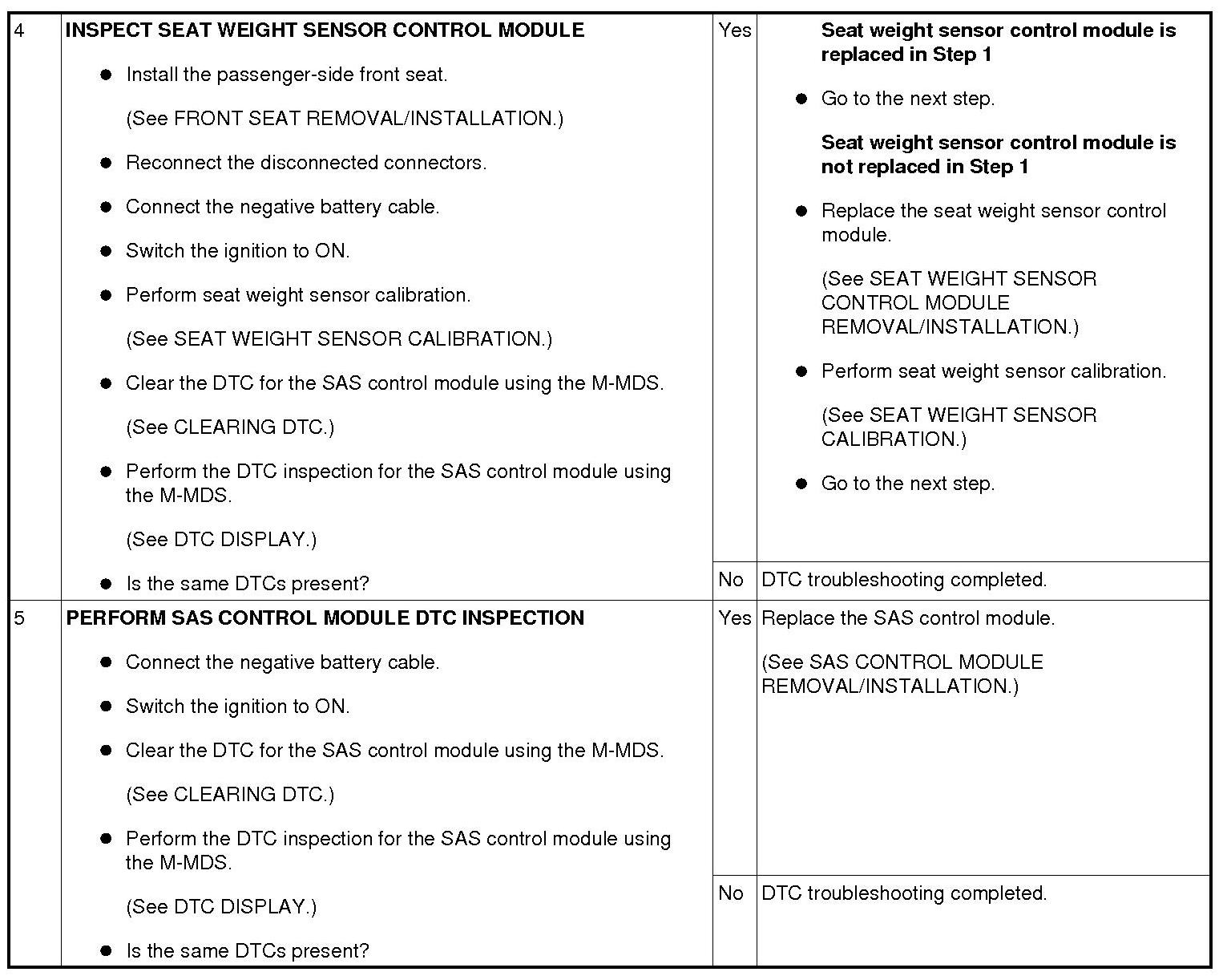 - Seat weight sensor calibration setting invalid