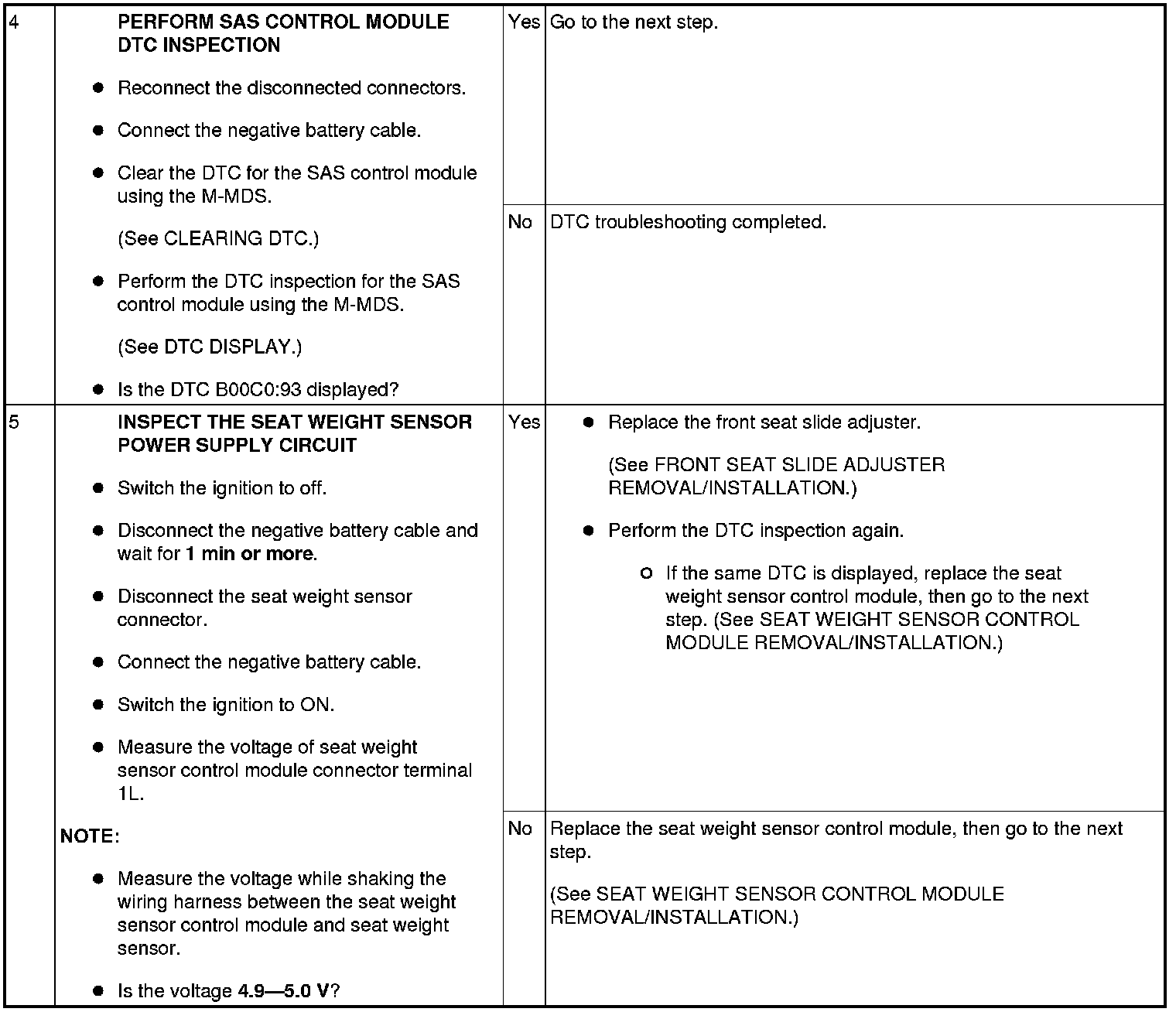- Open circuit or short to ground or short to power supply in wiring harness between seat weight sensor control module and seat weight sensor (FR)