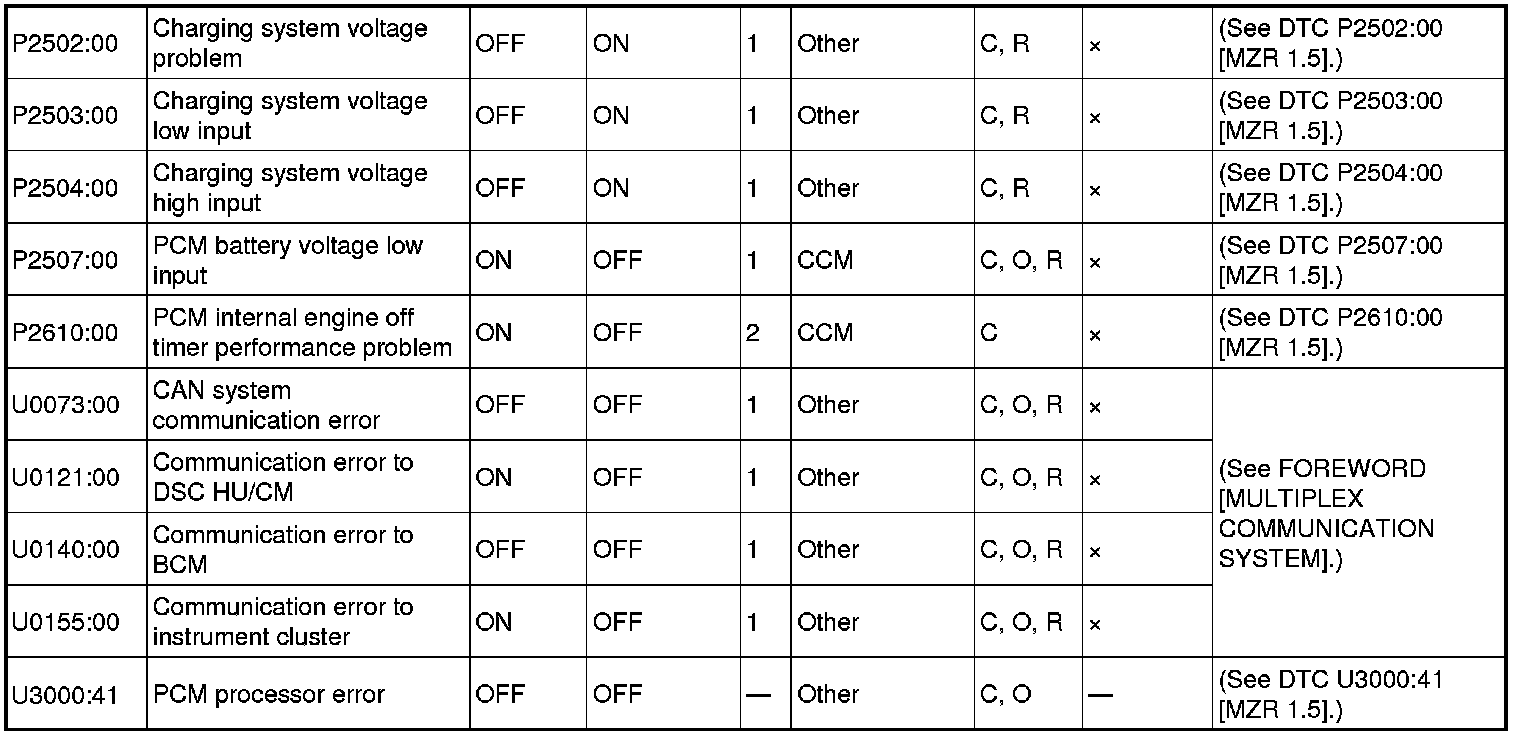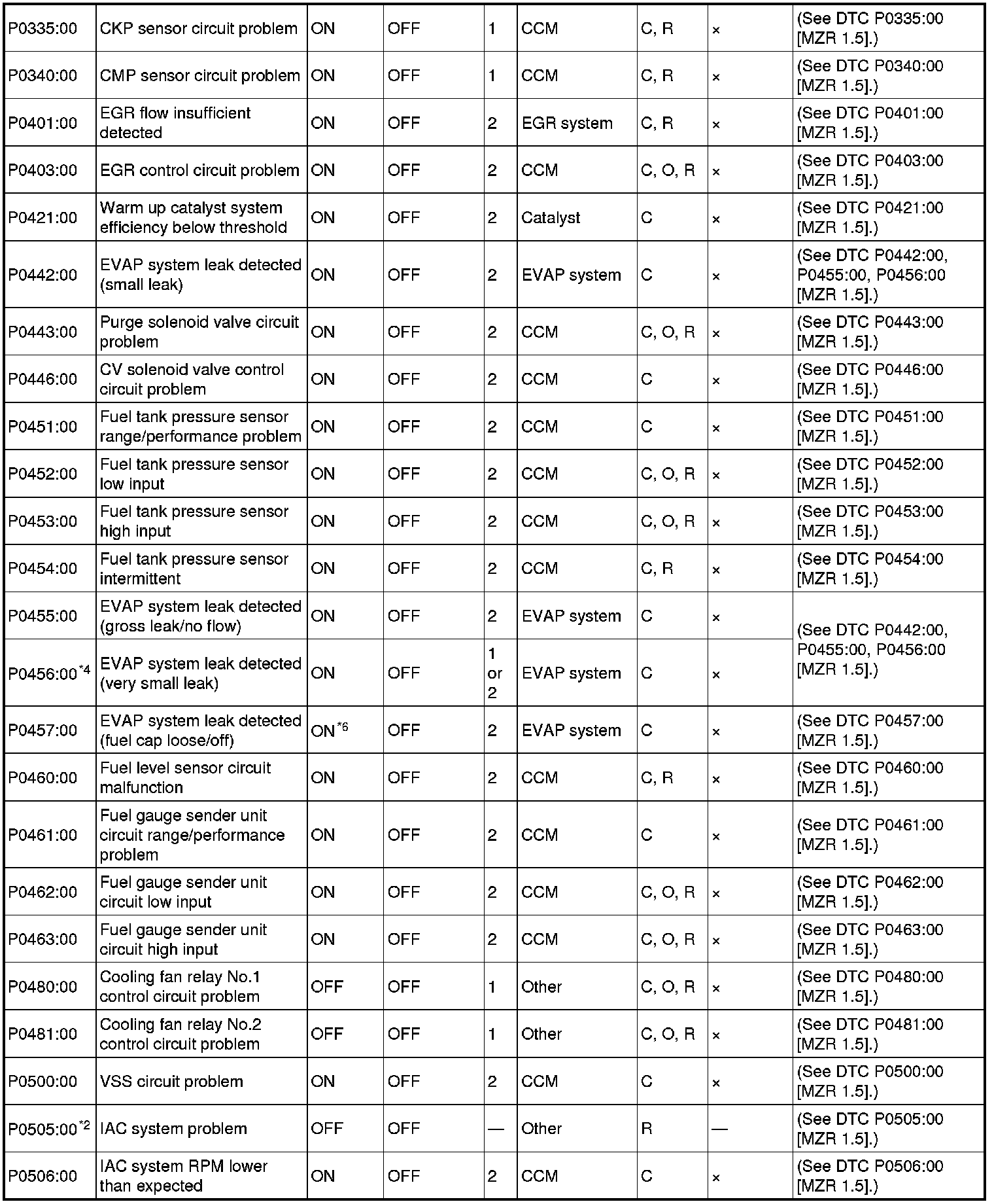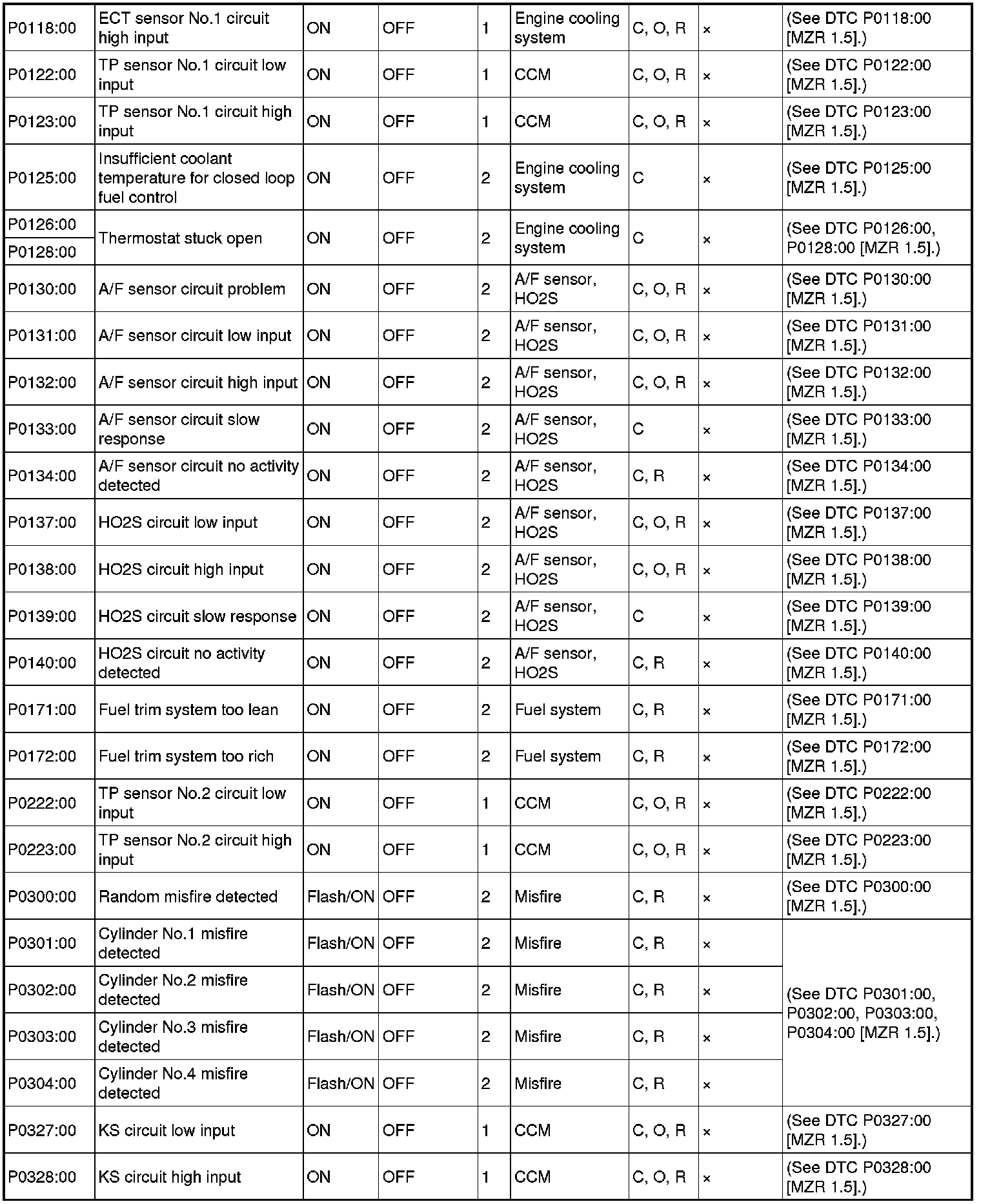 C; CMDTC self test, O; KOEO self test, R; KOER self test