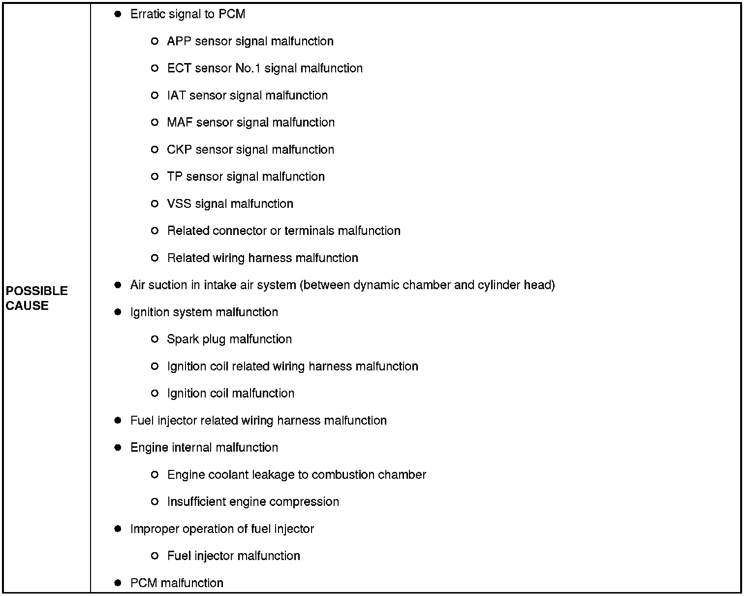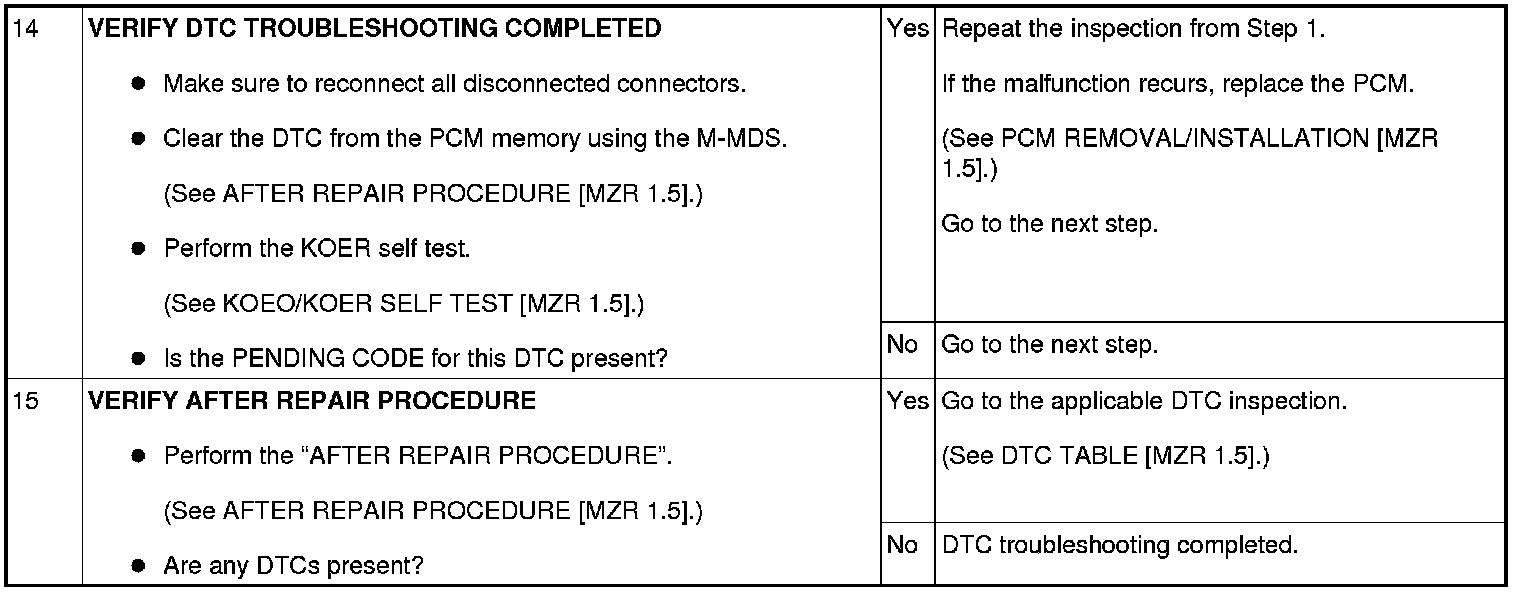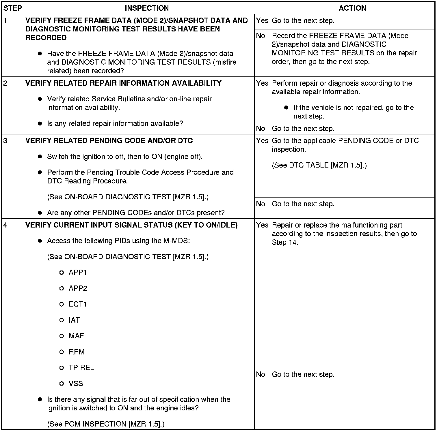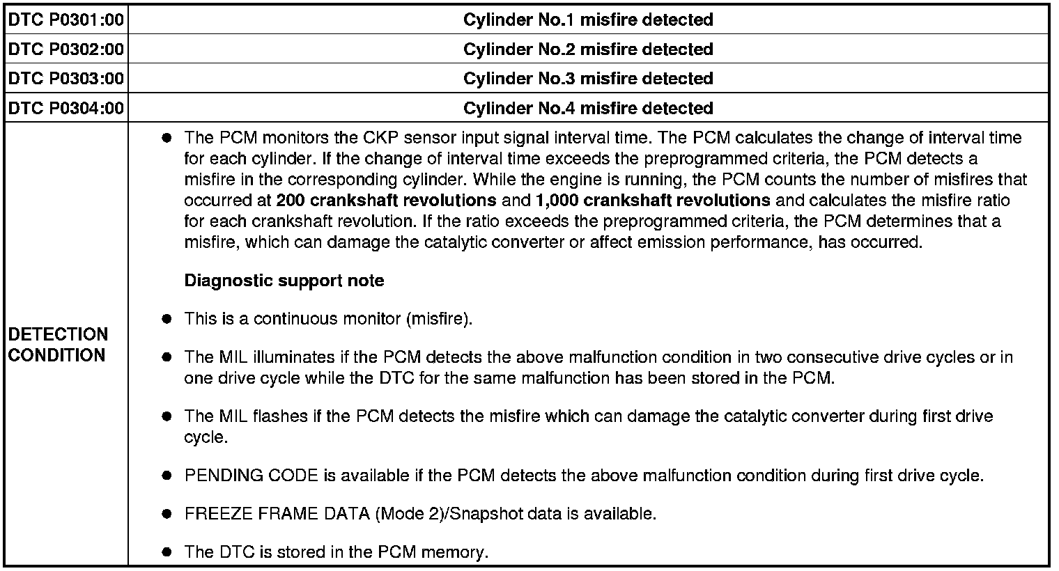 DTC P0301:00, P0302:00, P0303:00, P0304:00 [MZR 1.5]