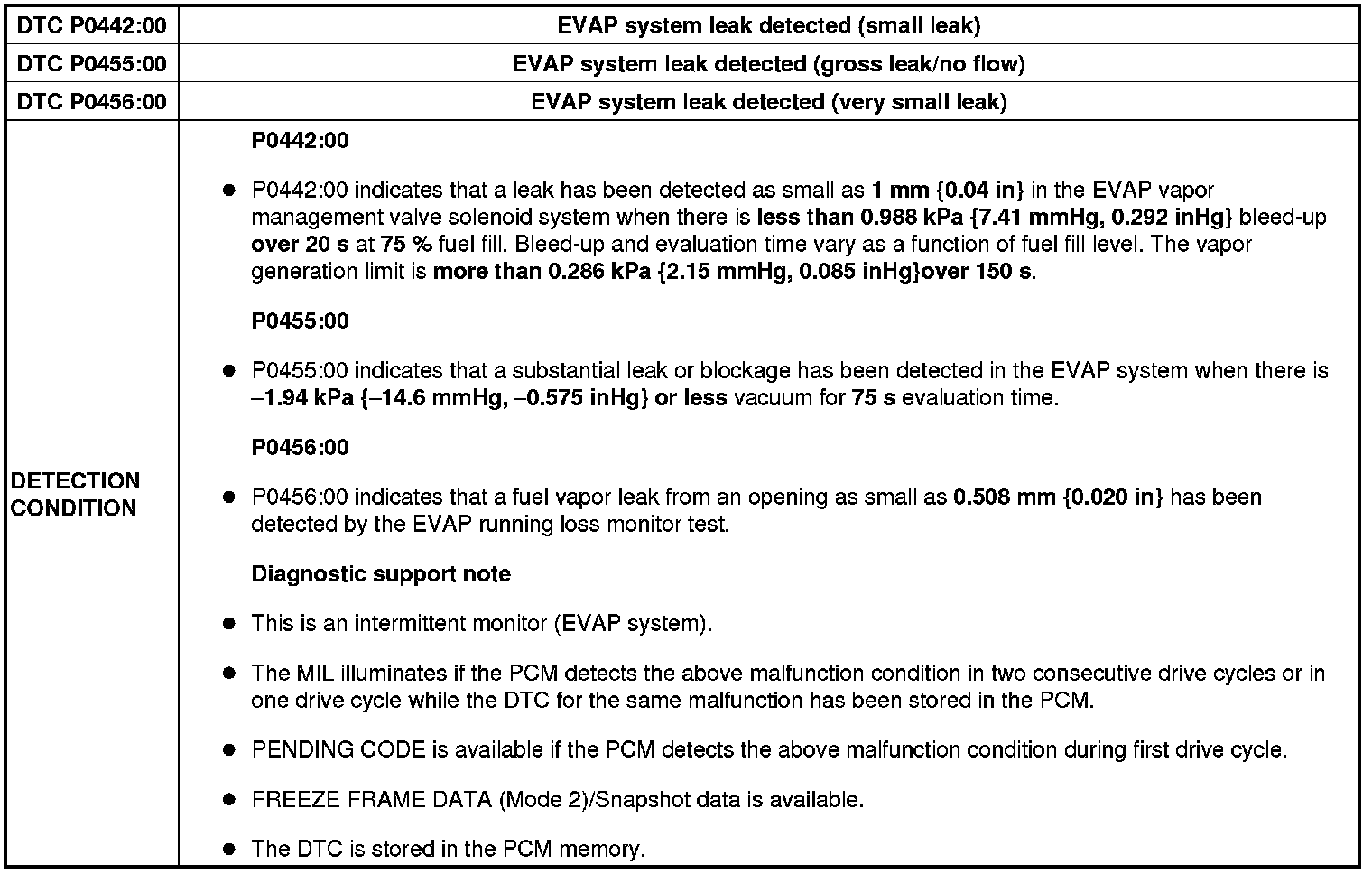DTC P0442:00, P0455:00, P0456:00 [MZR 1.5]