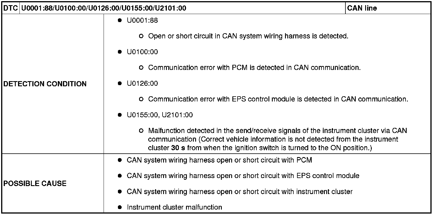 DTC U0001:88 / U0100:00 / U0126:00 / U0155:00 / U2101:00 [DYNAMIC STABILITY CONTROL (DSC)]