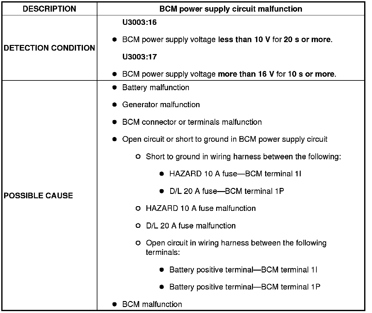 DTC U3003:16 / U3003:17 [BCM]