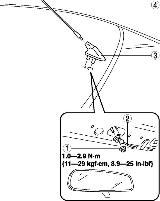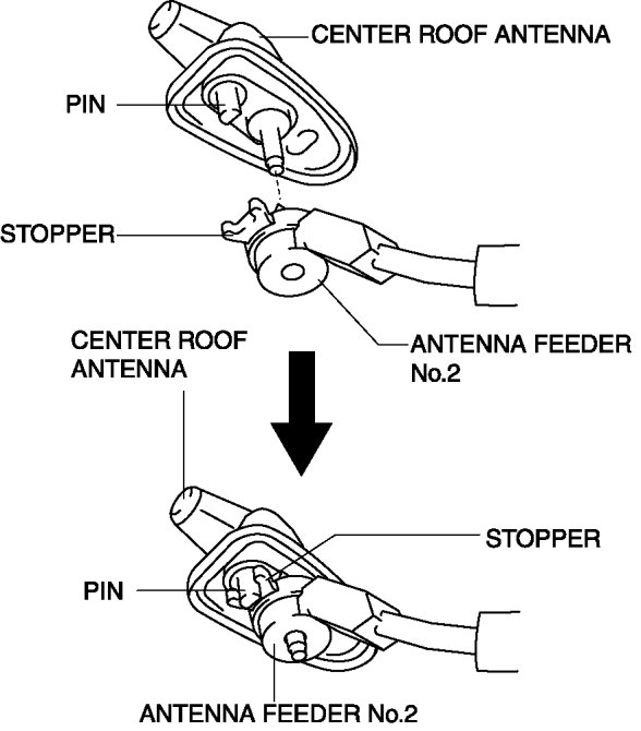 1. Install the antenna feeder No.2 stopper to the pin of the center roof antenna.