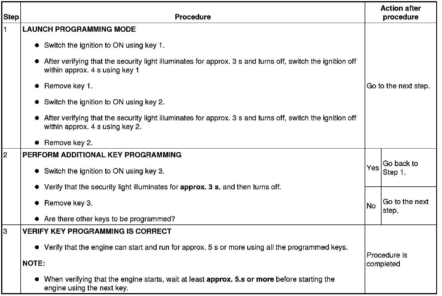 - This procedure is performed for disabling the No.1 Additional Key Programming Procedure (Using Two Valid Keys).