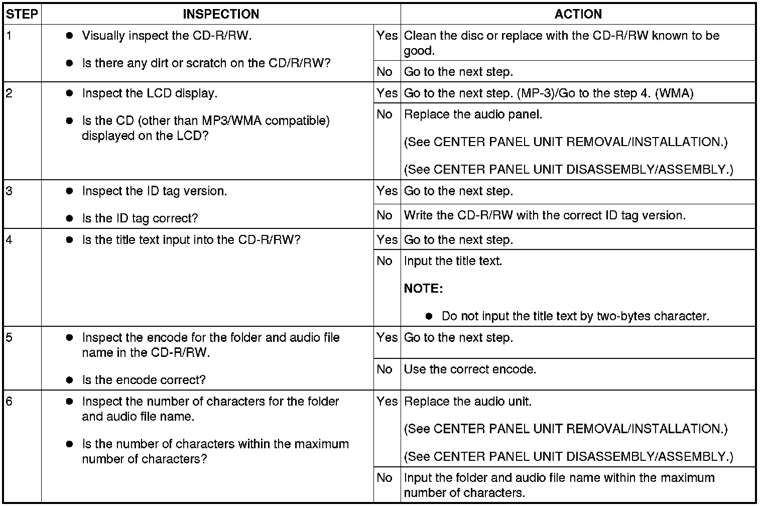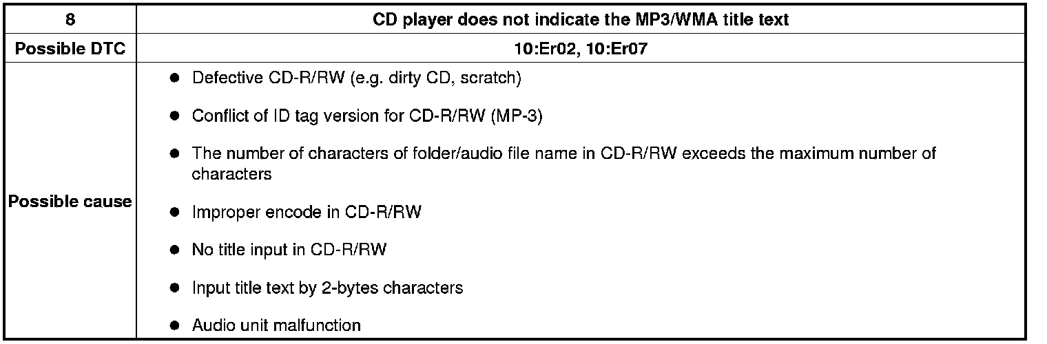 NO.8 CD PLAYER DOES NOT INDICATE THE MP3/WMA TITLE TEXT [CD PLAYER]