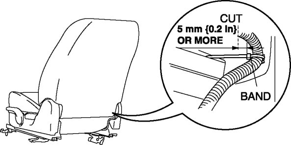 7. Cut the band securing the side air bag wiring harness.
