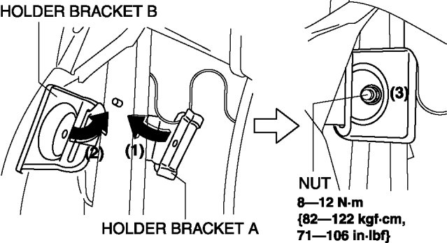 5. Install holder bracket A and B to the frame using the nut.(3)