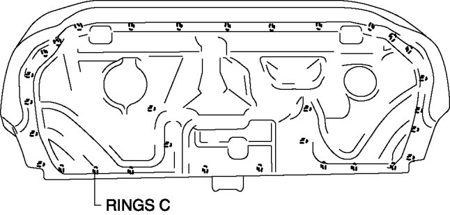 2. Remove rings C, then remove the seat cushion trim from the seat cushion pad.