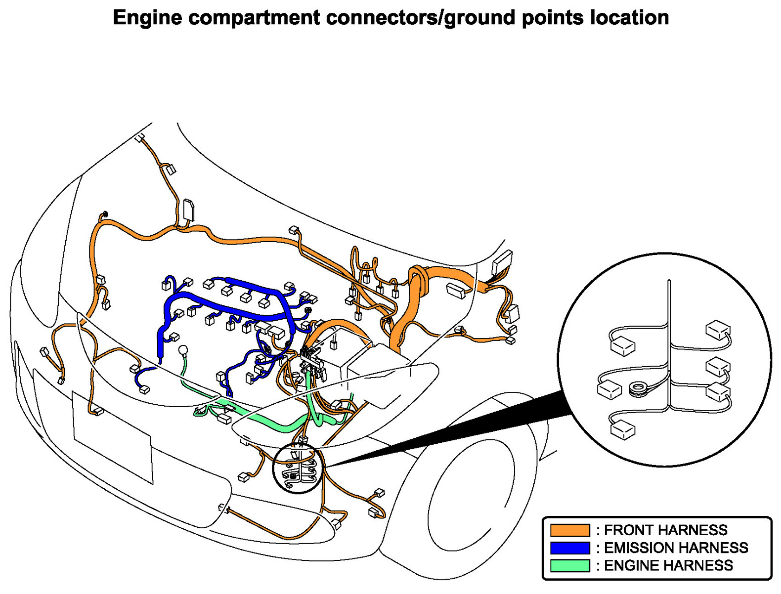 Engine Compartment Connectors/Ground Points Location