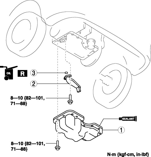 2 Install the oil pan before the applied silicone sealant starts to harden.