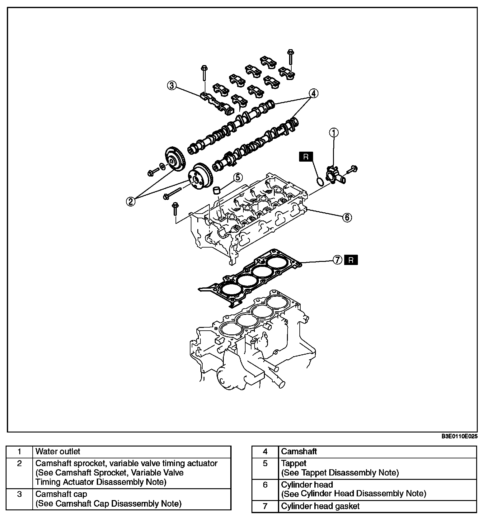 Camshaft Cap Disassembly Note