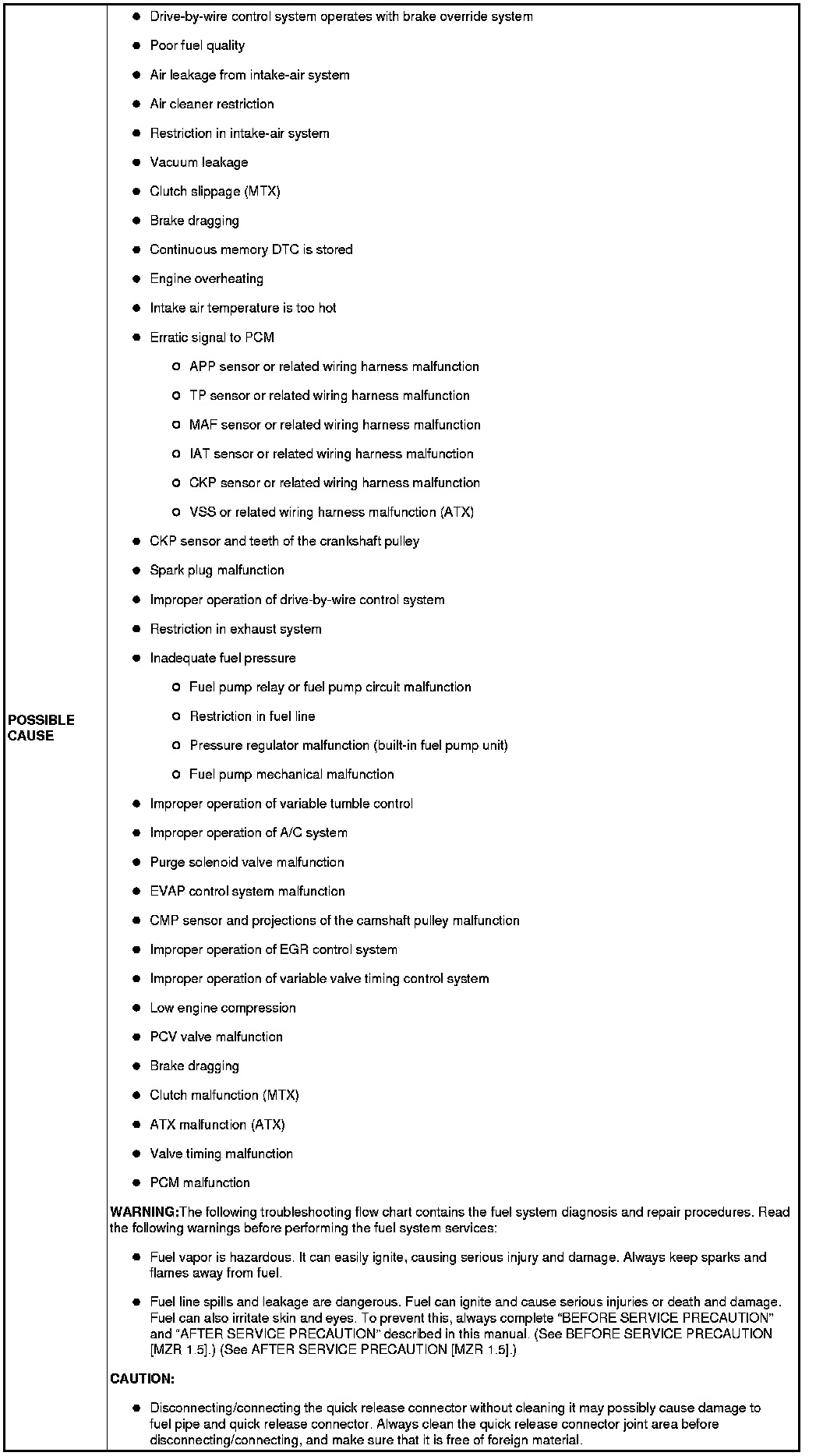 NO.12 LACK/LOSS OF POWER-ACCELERATION/CRUISE [MZR 1.5]