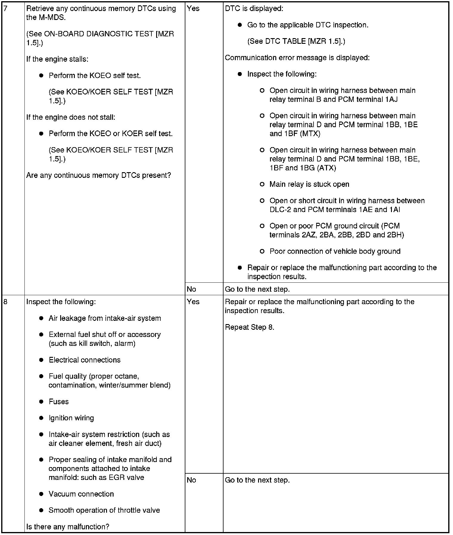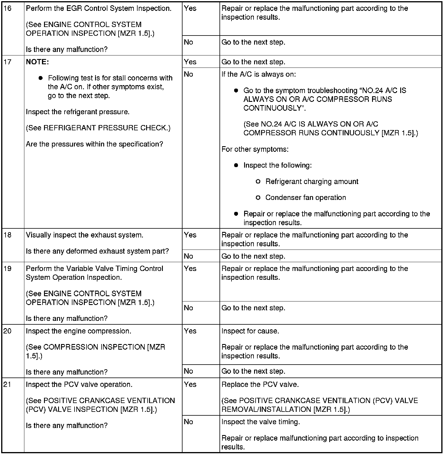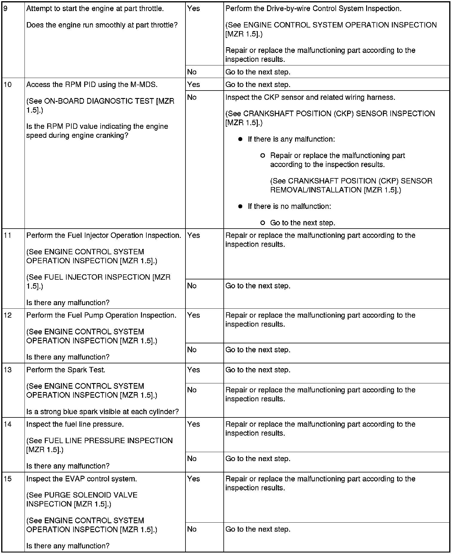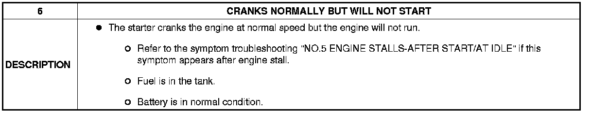 NO.6 CRANKS NORMALLY BUT WILL NOT START [MZR 1.5]