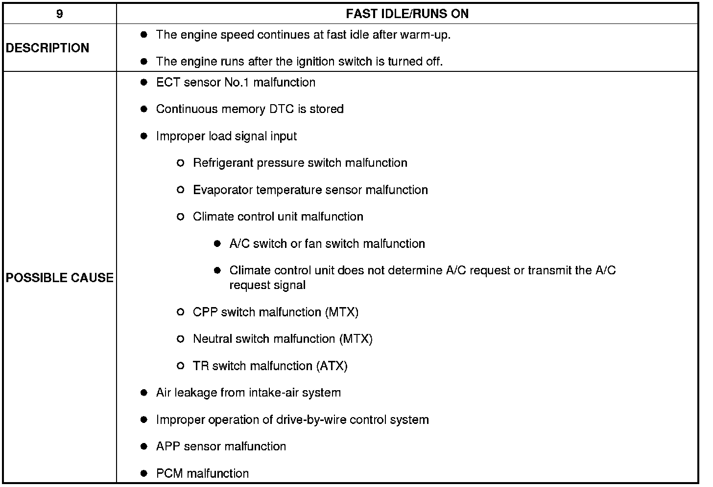 No. 9 Fast Idle/Runs ON