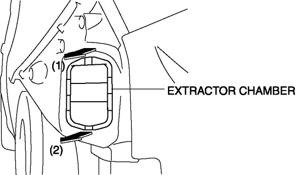 4. Pull the extractor chamber in the direction of the arrow (1), (2) shown in the figure using a fastener remover and remove the extractor chamber.