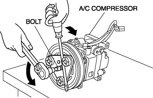 1. When removing or installing the bolt, hold the pressure plate in place as shown in the figure.